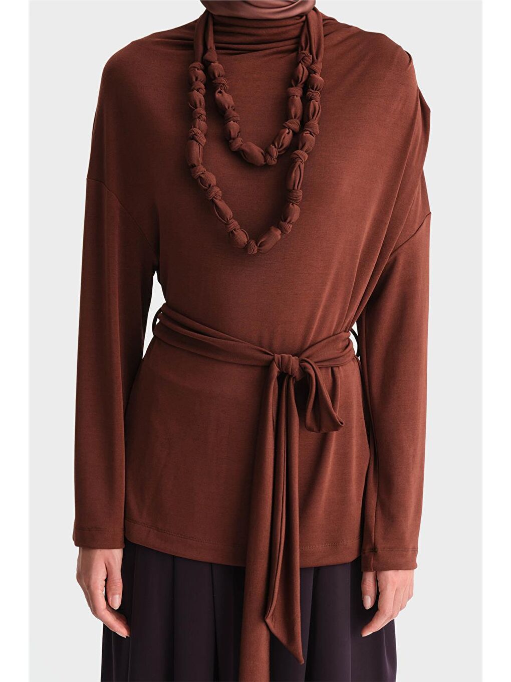 گردنبند قهوهای طرحدار، مدل بلوز جزئیاتدار، کد 24K3614، قهوهای قرمز