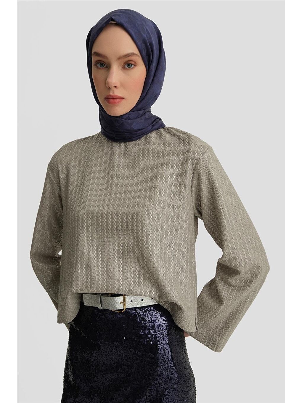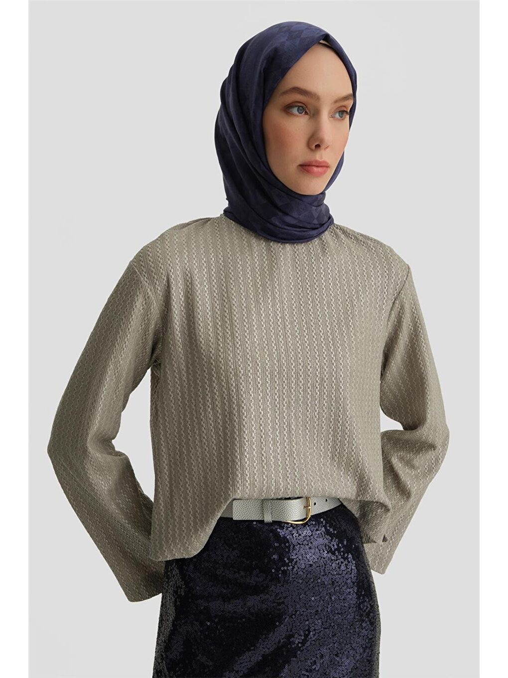 بلوز بافتنی براق خاکستری ۲۵Y۳۷۱۴