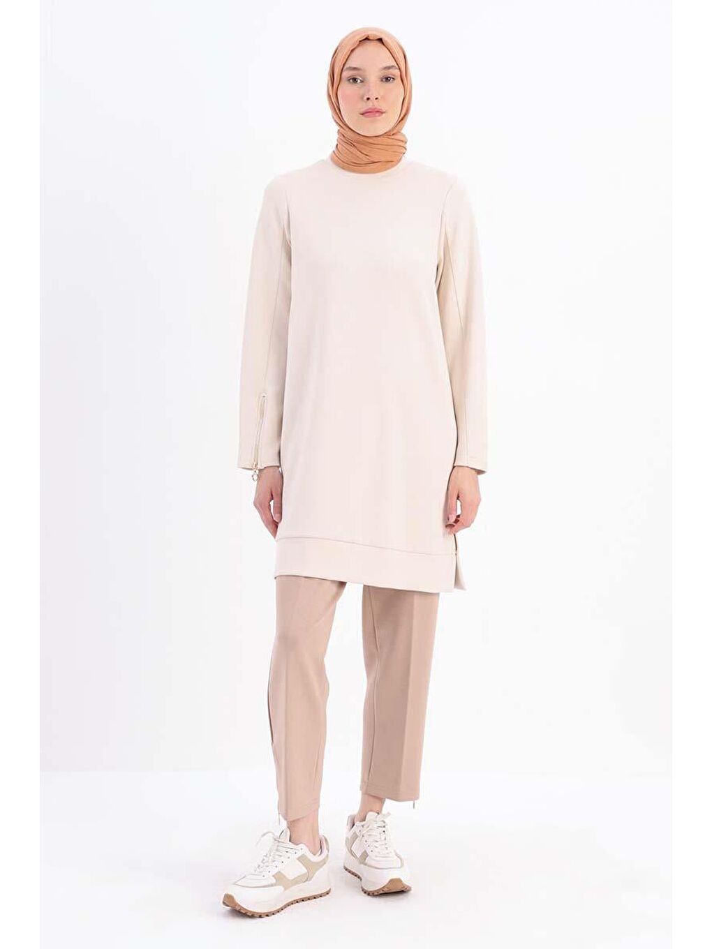 با تونیک آستین زیپدار بژ روشن، استایلی مدرن و راحت داشته باشید