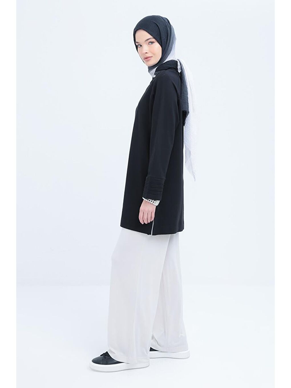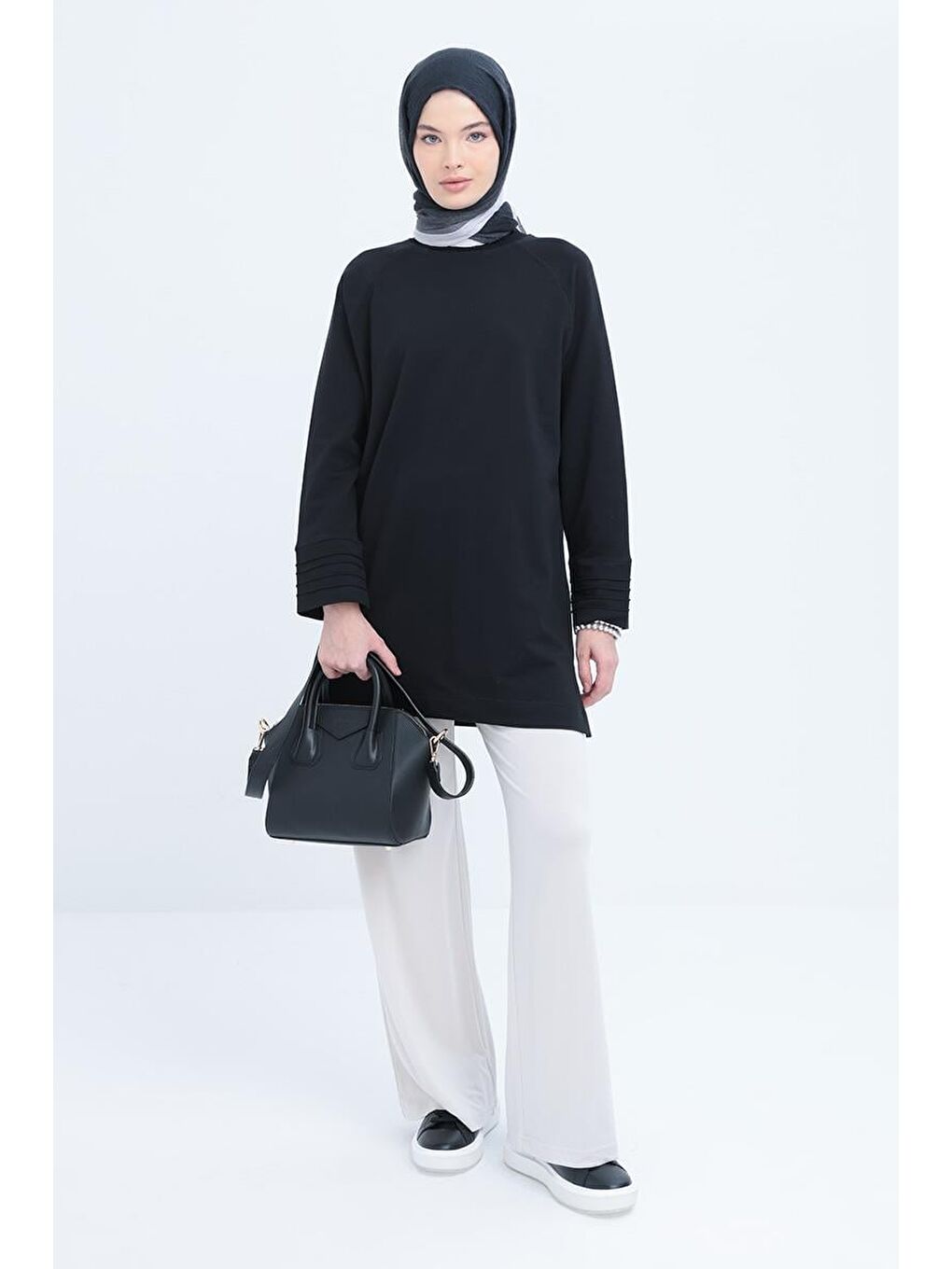 تونیک مشکی با سرآستین چیندار و چاکدار
