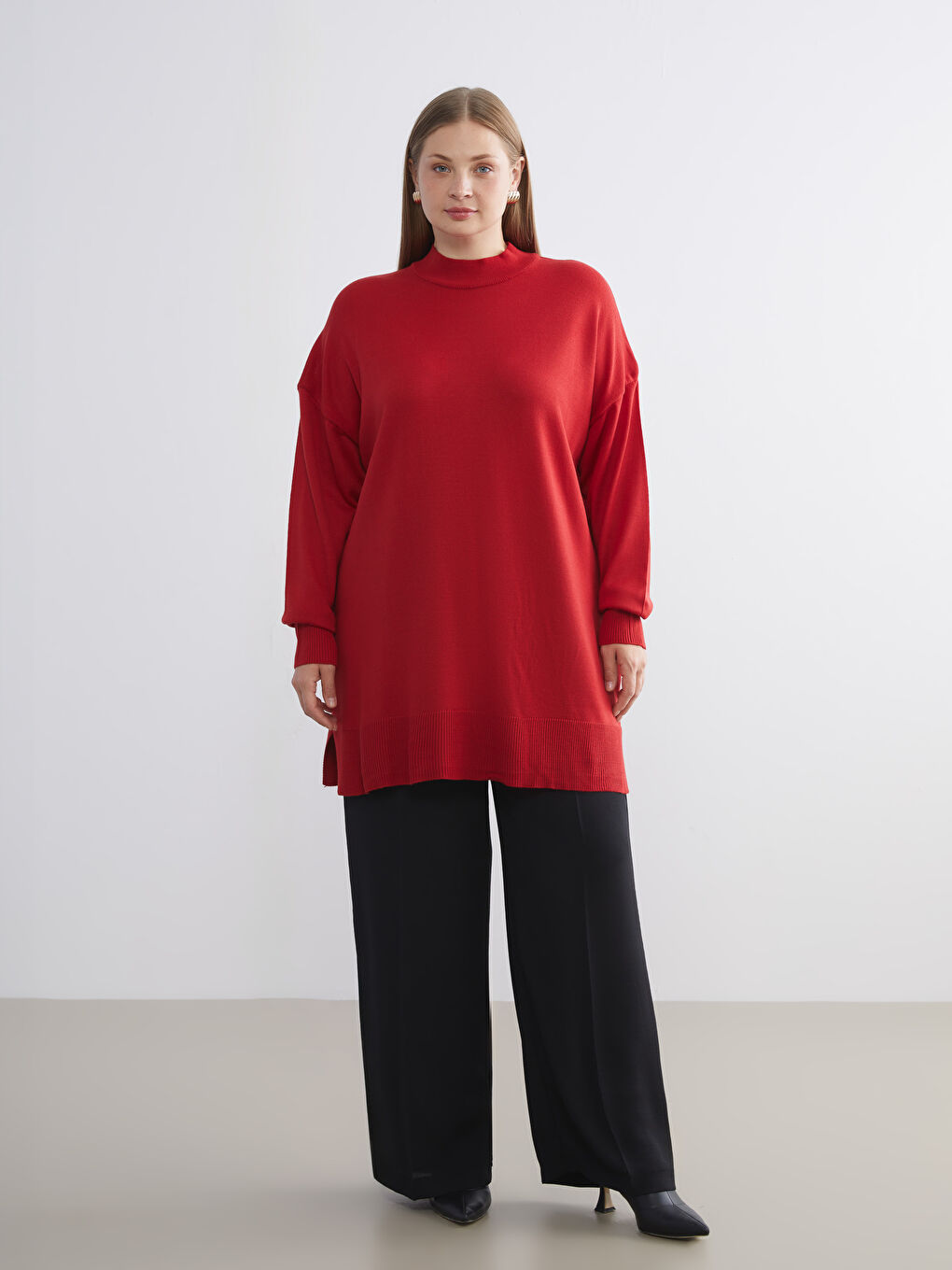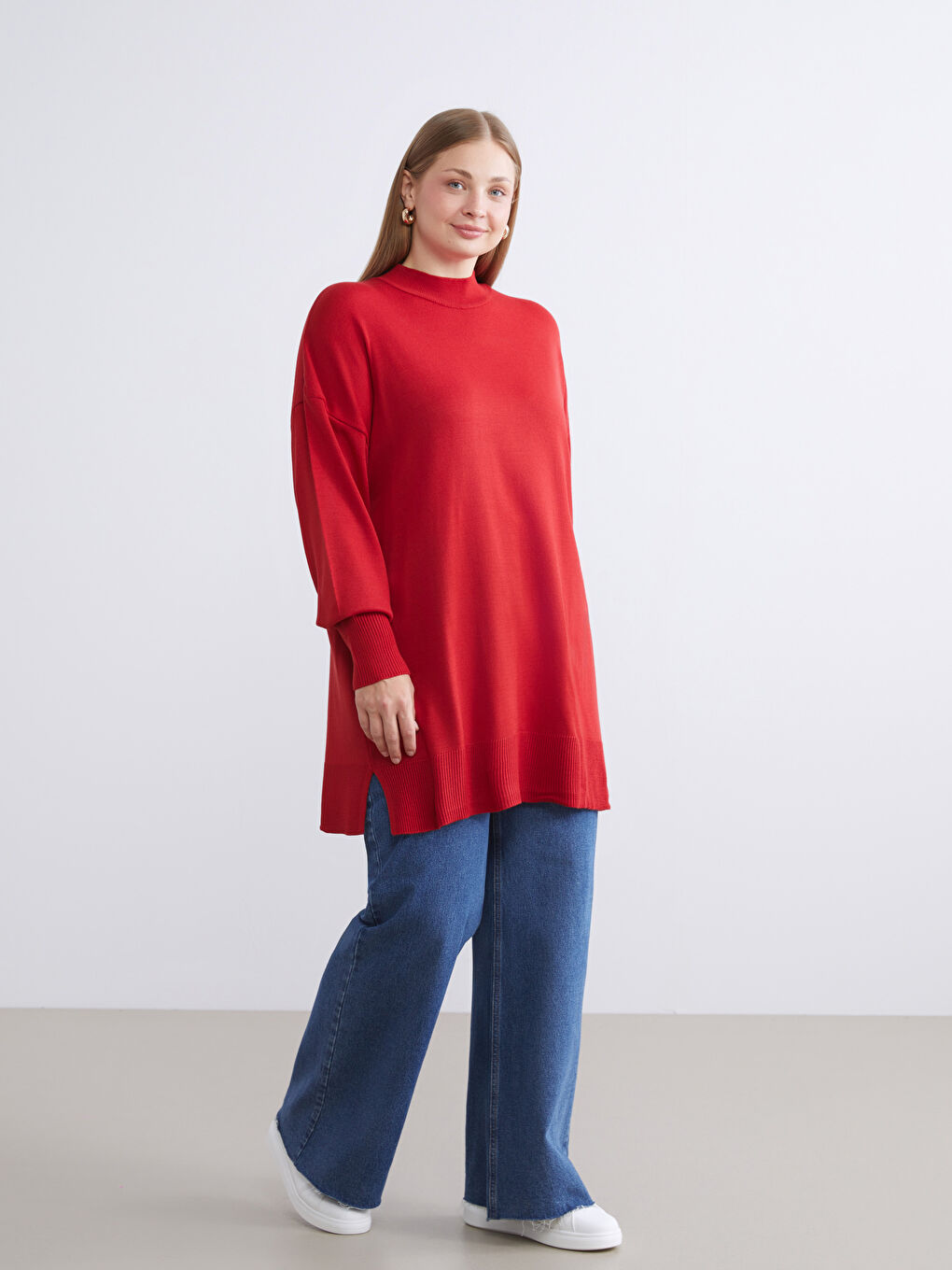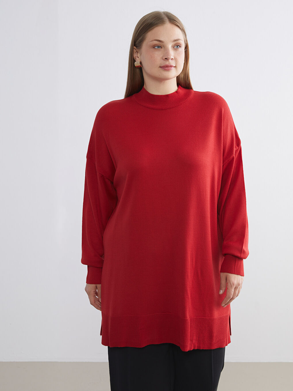 تونیک بافتنی زنانه یقه ایستاده قرمز