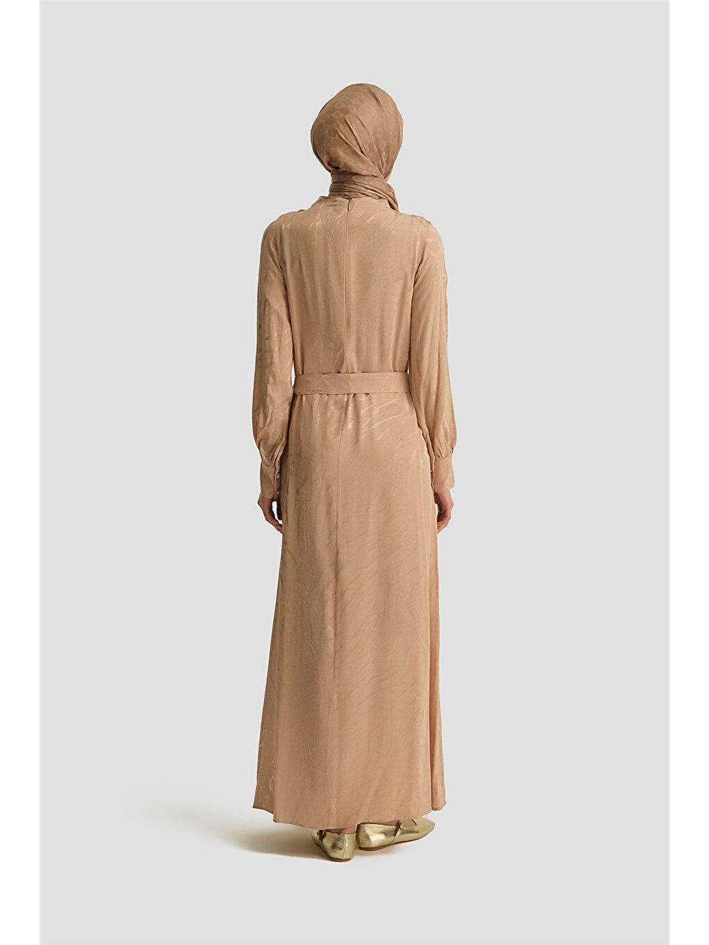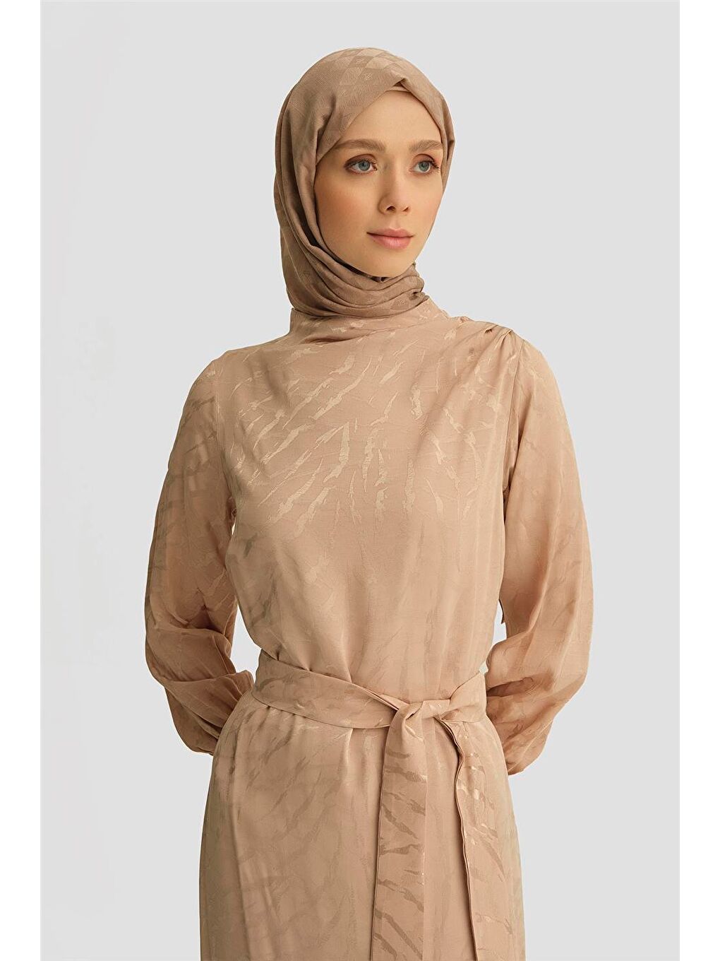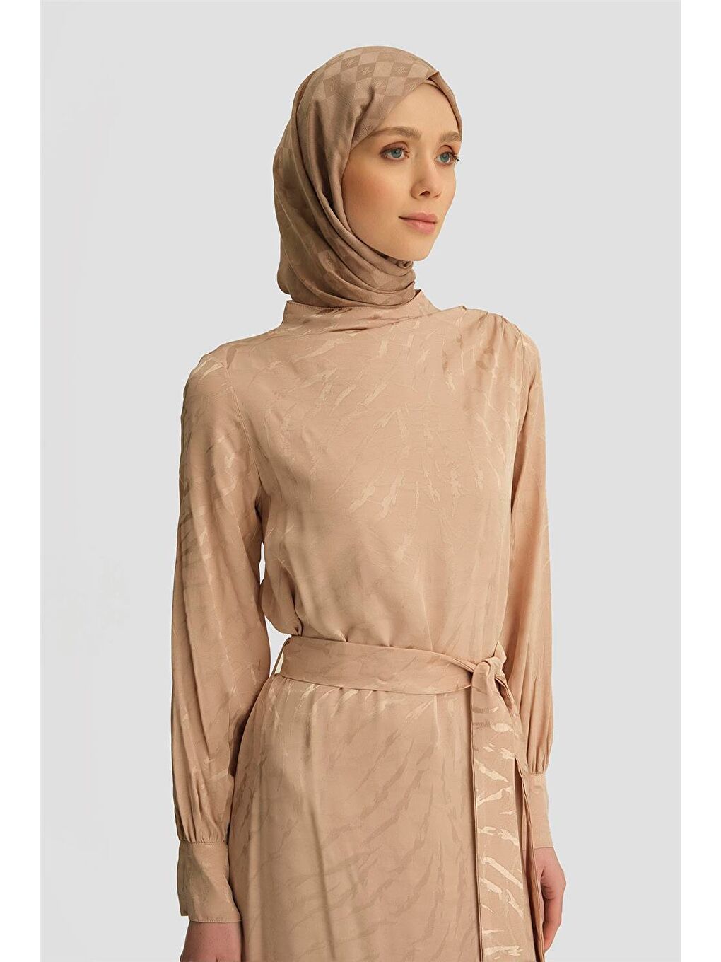لباس ساتن طرح دار بژ 25Yt920 سمور یا راسو