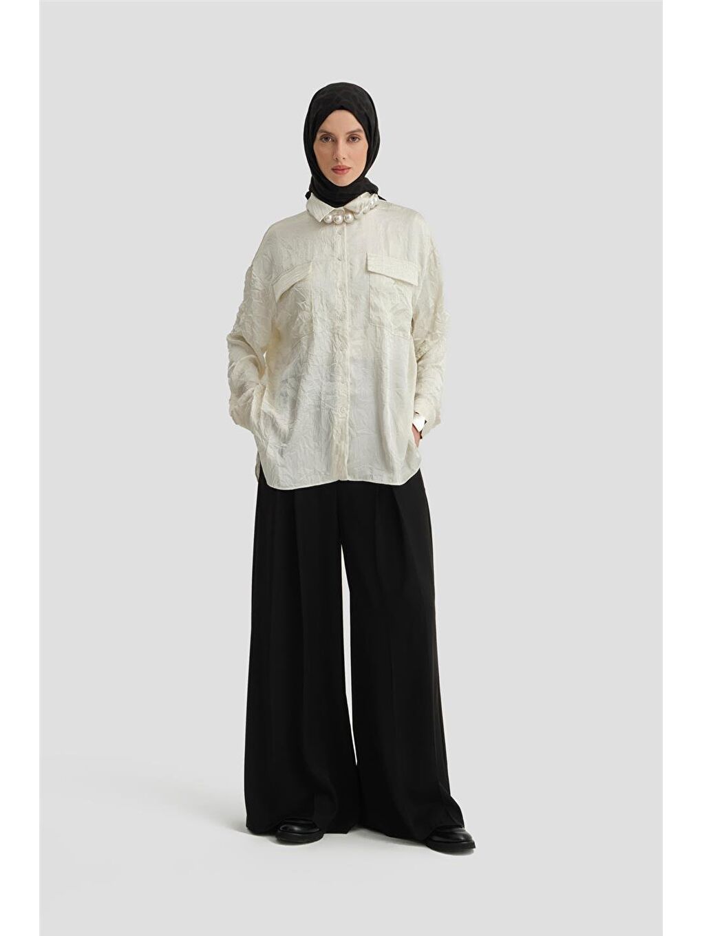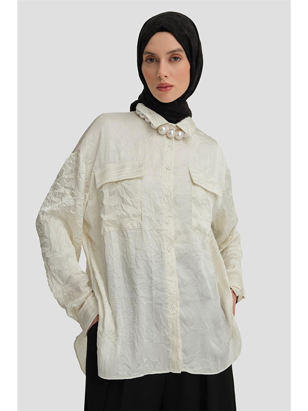 پیراهن گشاد جیب‌دار بژ Ort3634 Ecru