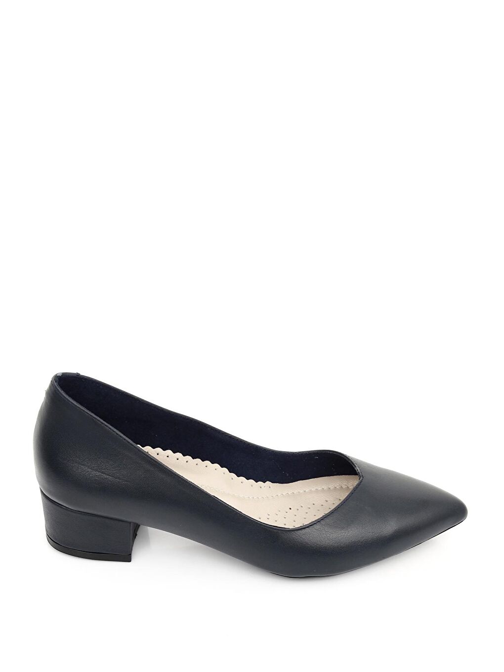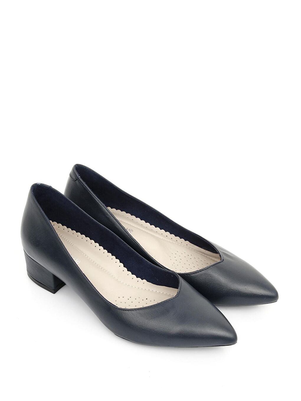 کفش زنانه چرم اصل سرمه‌ای نوک‌تیز پاشنه کوتاه ضخیم کد ۲۵۱۷۲