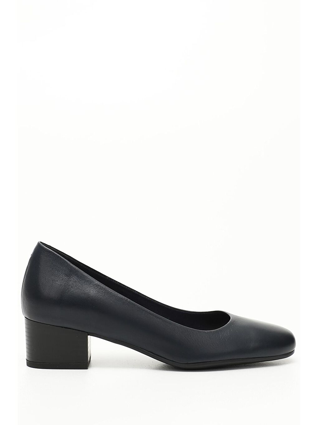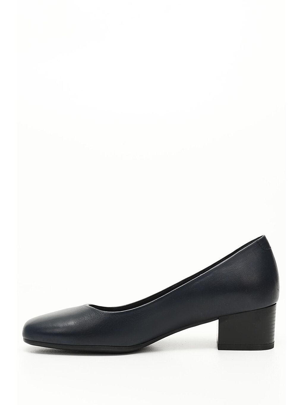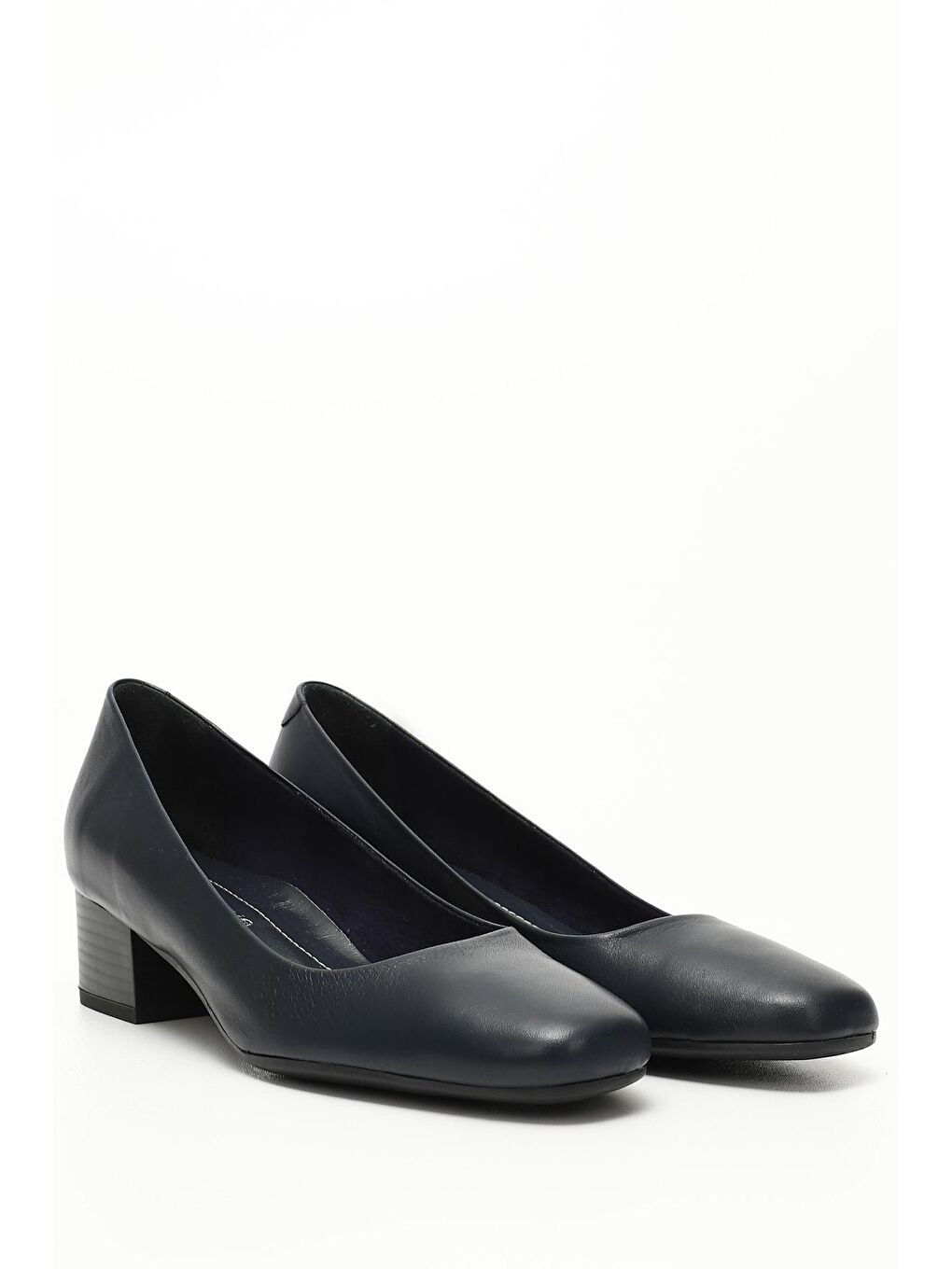 کفش زنانه چرم اصل آبی تیره سرمهای، نوک گرد، پاشنه بلند و ضخیم، کد ۲۴۱۰۰