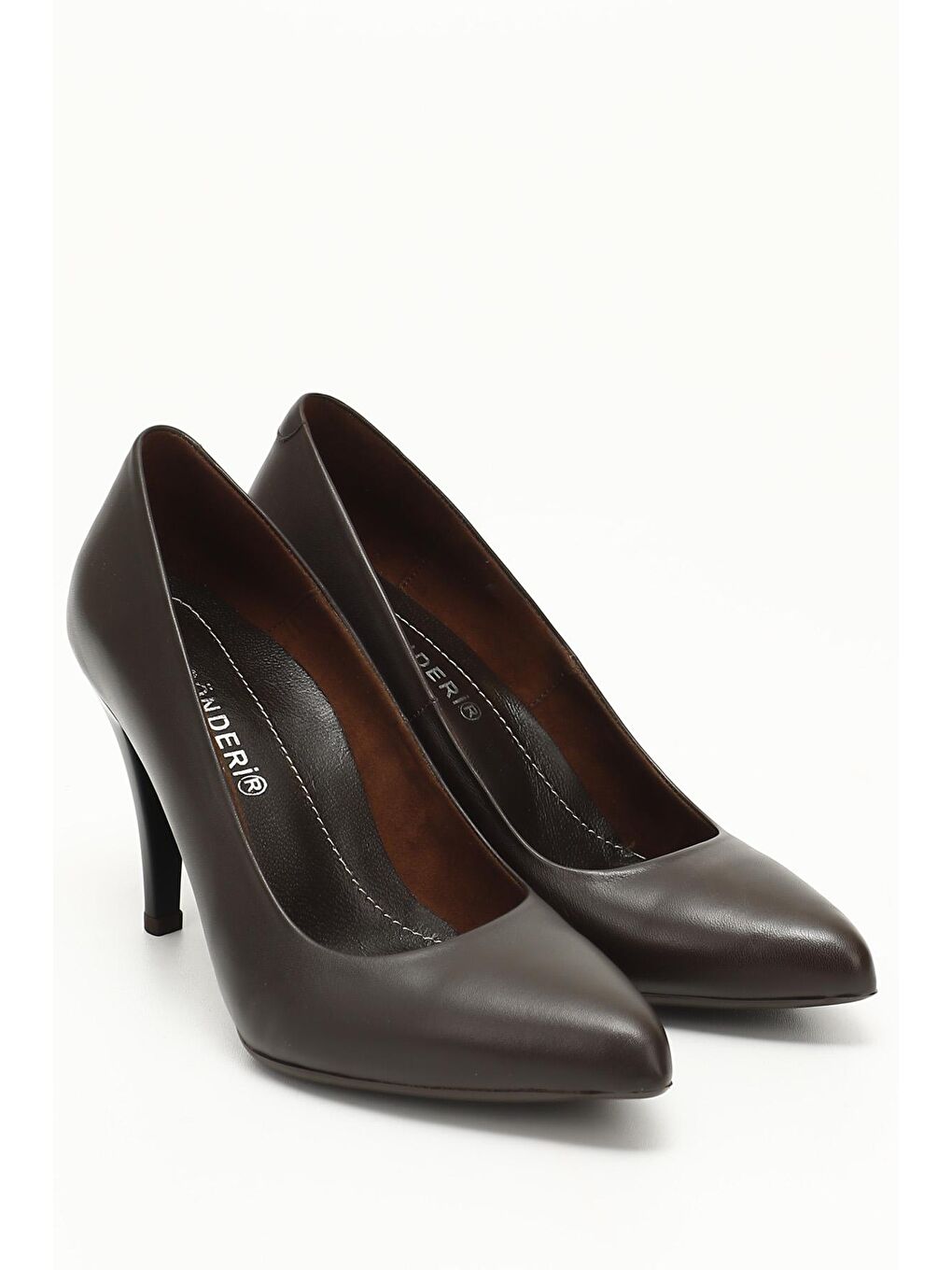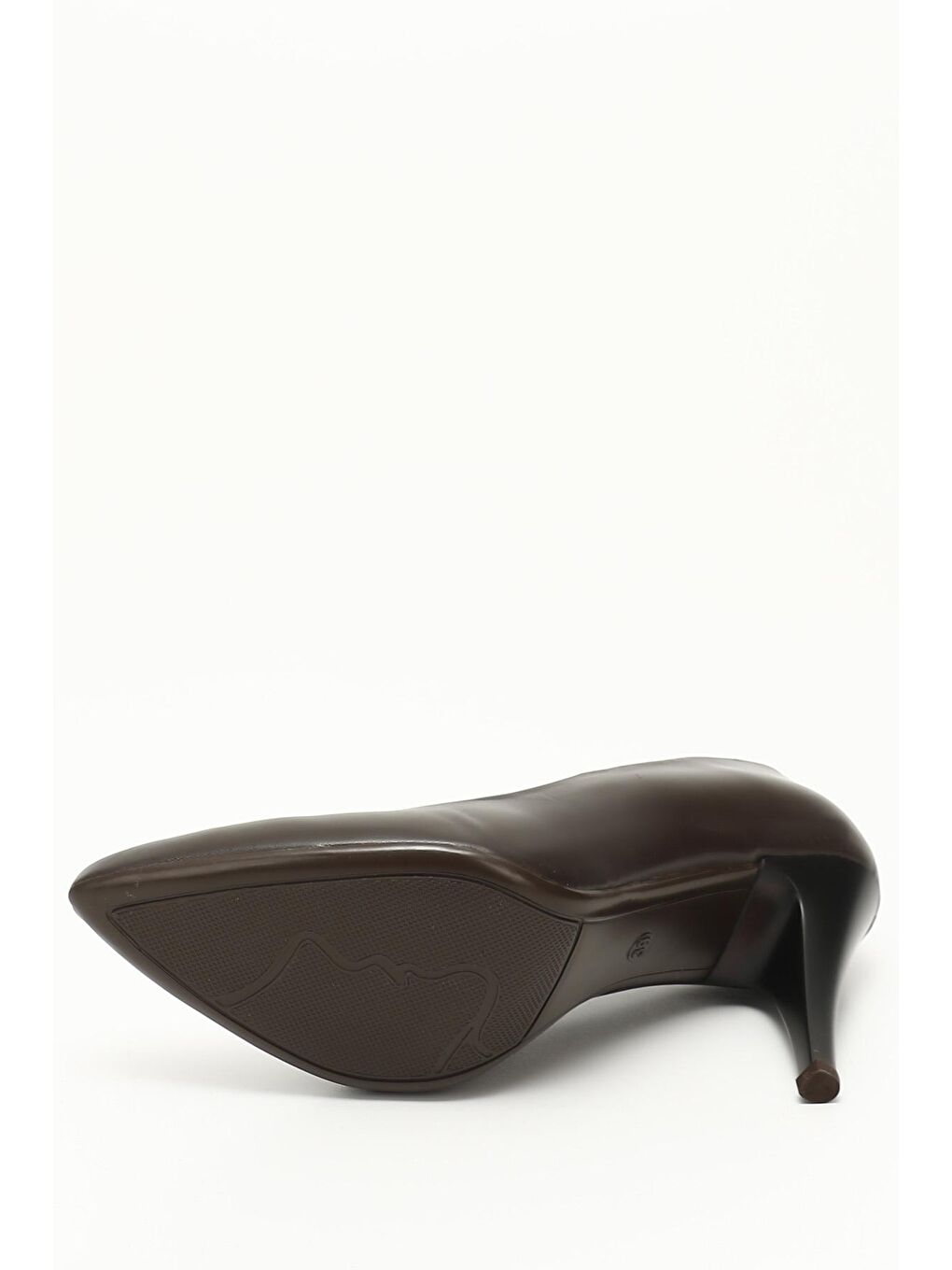 کفش زنانه چرم اصل قهوهای قهوهای تیره، نوکتیز، پاشنه بلند و نازک، مدل ۲۲۳۵۴