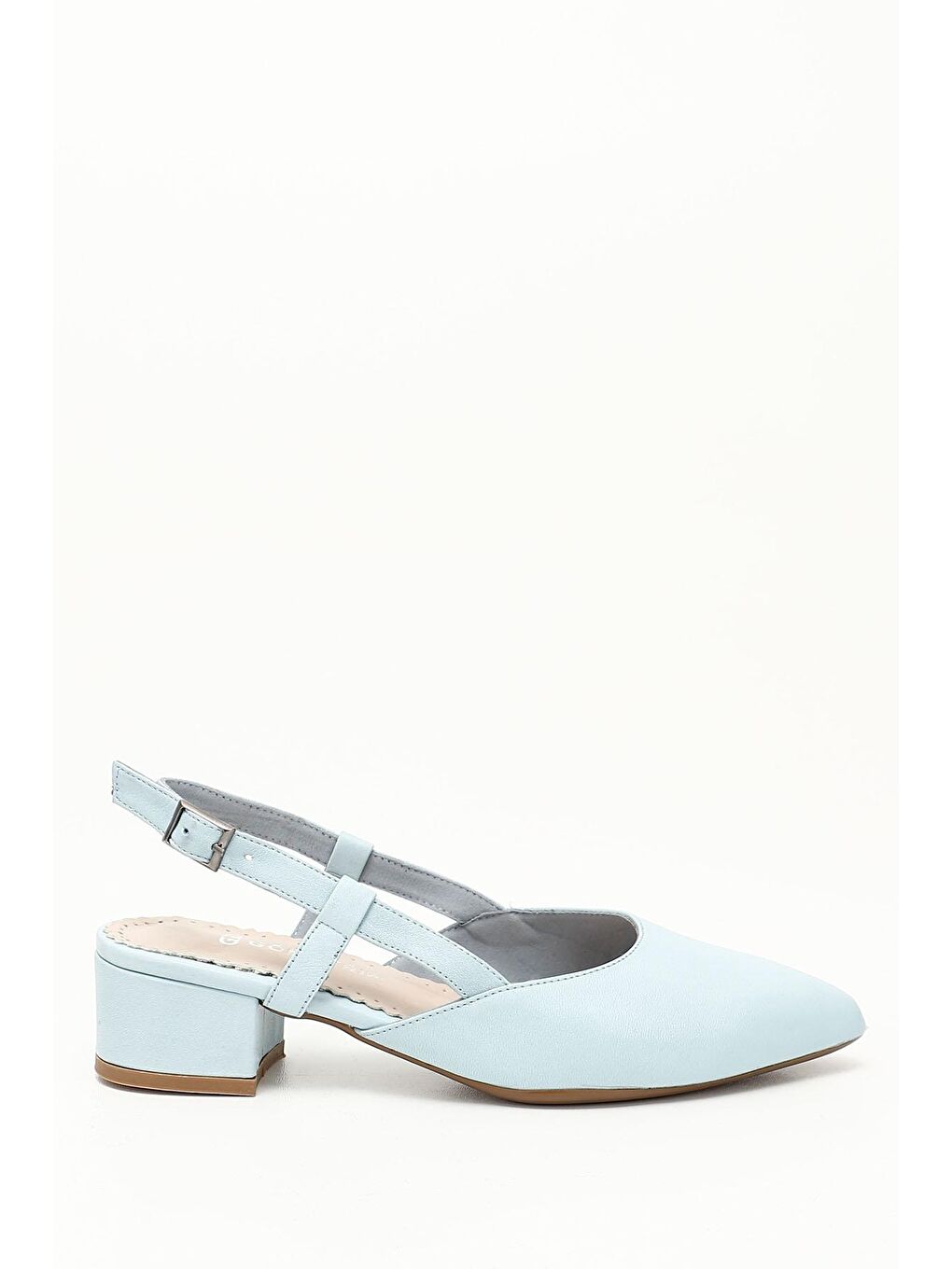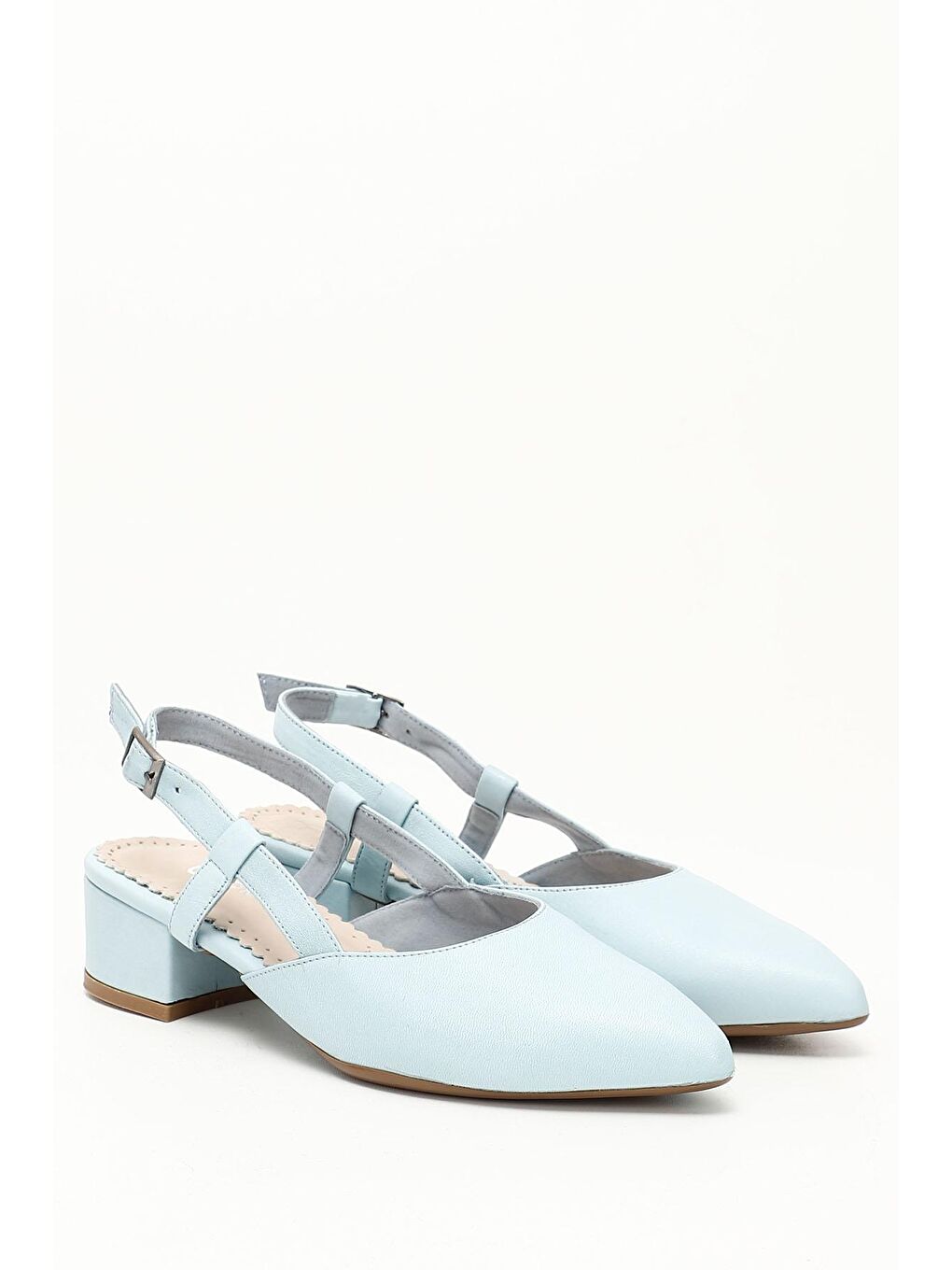 کفش تابستانی زنانه چرم اصل آبی BABY BLUE نوک تیز پاشنه کوتاه ضخیم پشت بنددار کد ۲۴۲۵۷