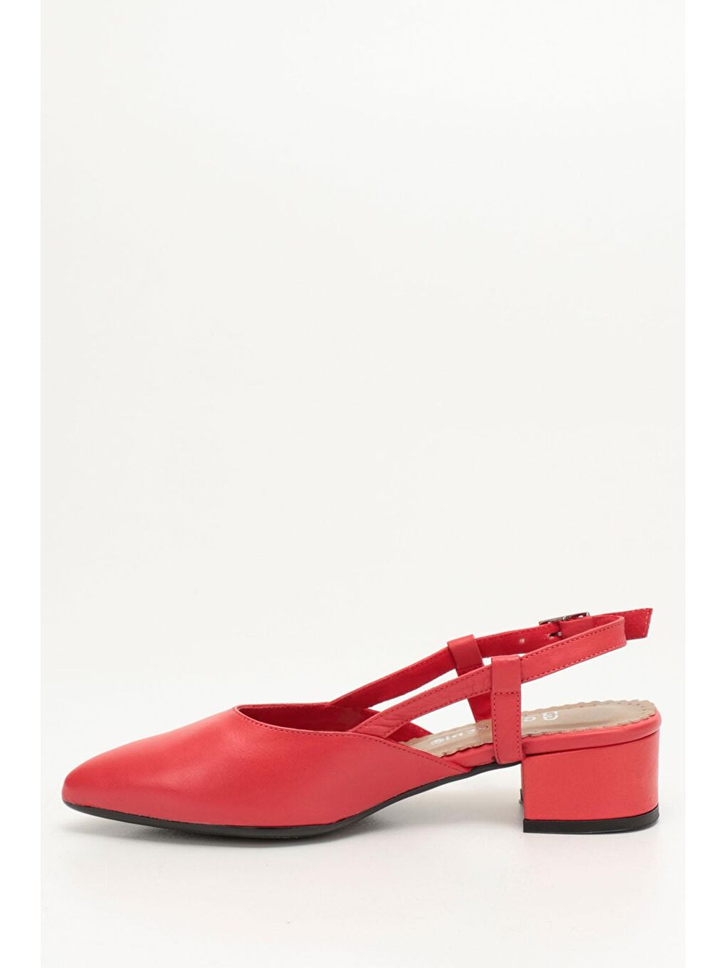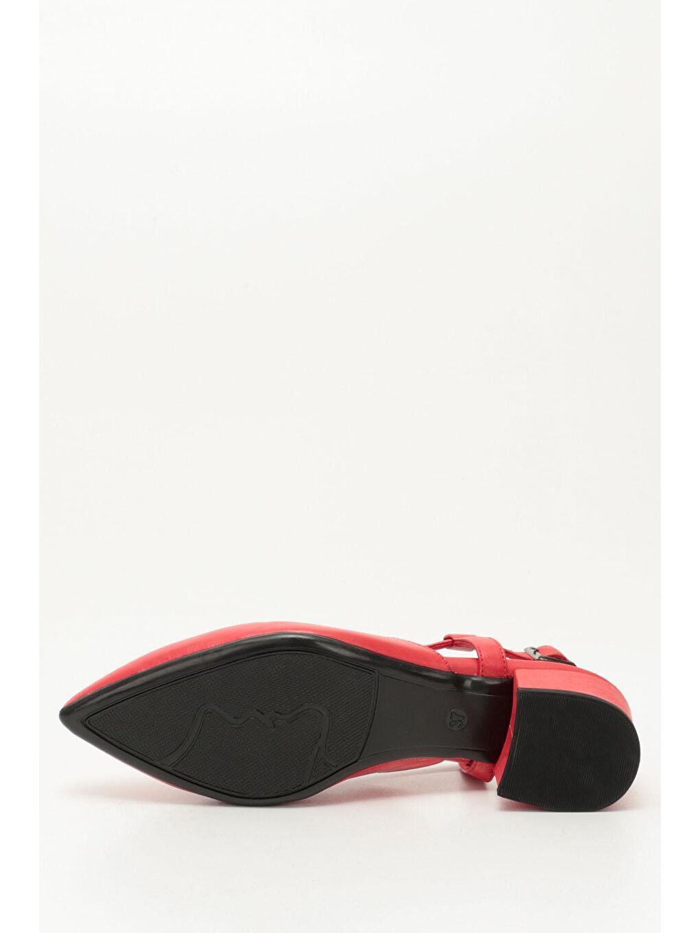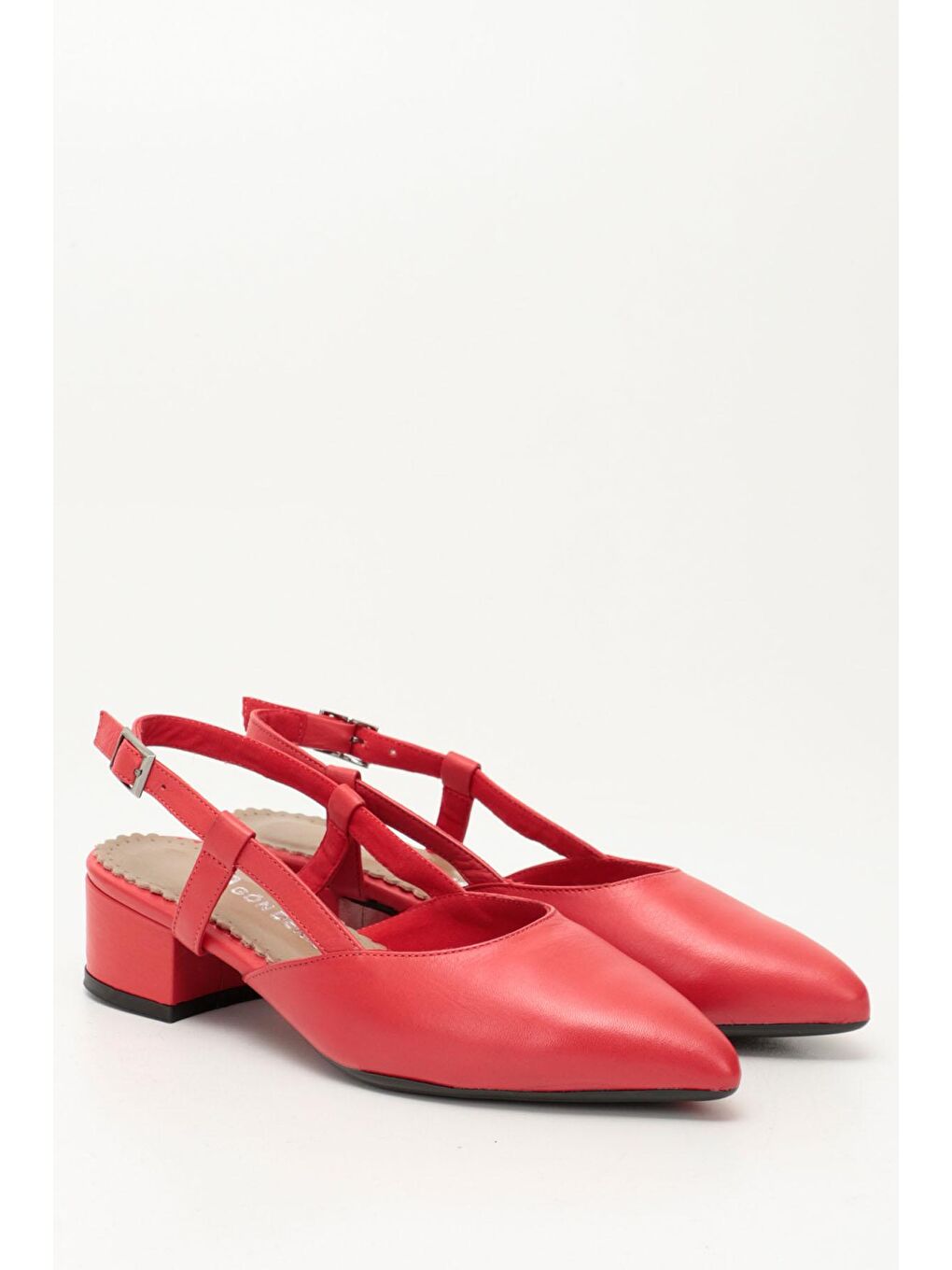 کفش تابستانی زنانه چرم اصل قرمز مات، نوک تیز، پاشنه کوتاه، ضخیم، پشت بنددار، کد ۲۴۲۵۷