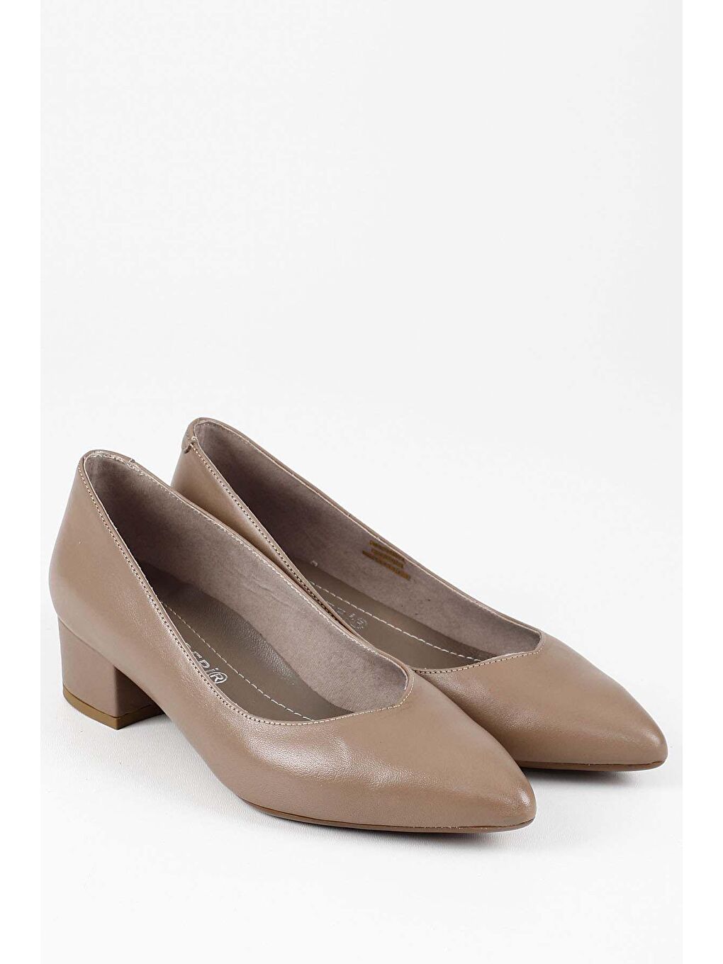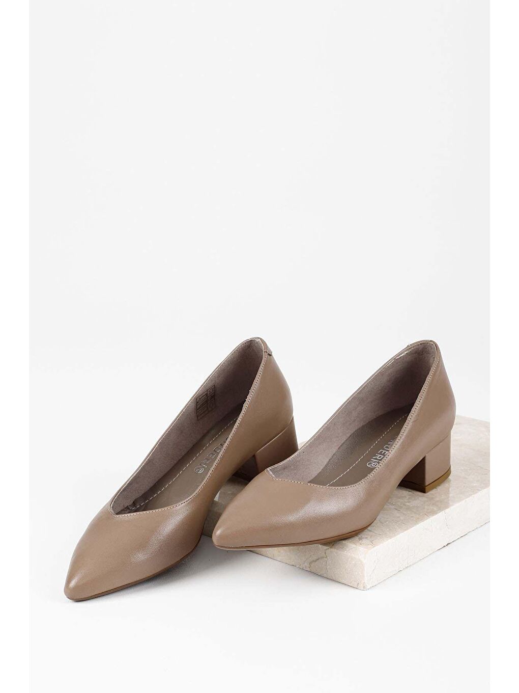 کفش زنانه چرم اصل مینک بژ، نوک تیز، پاشنه کوتاه و ضخیم، کد ۲۵۱۷۲