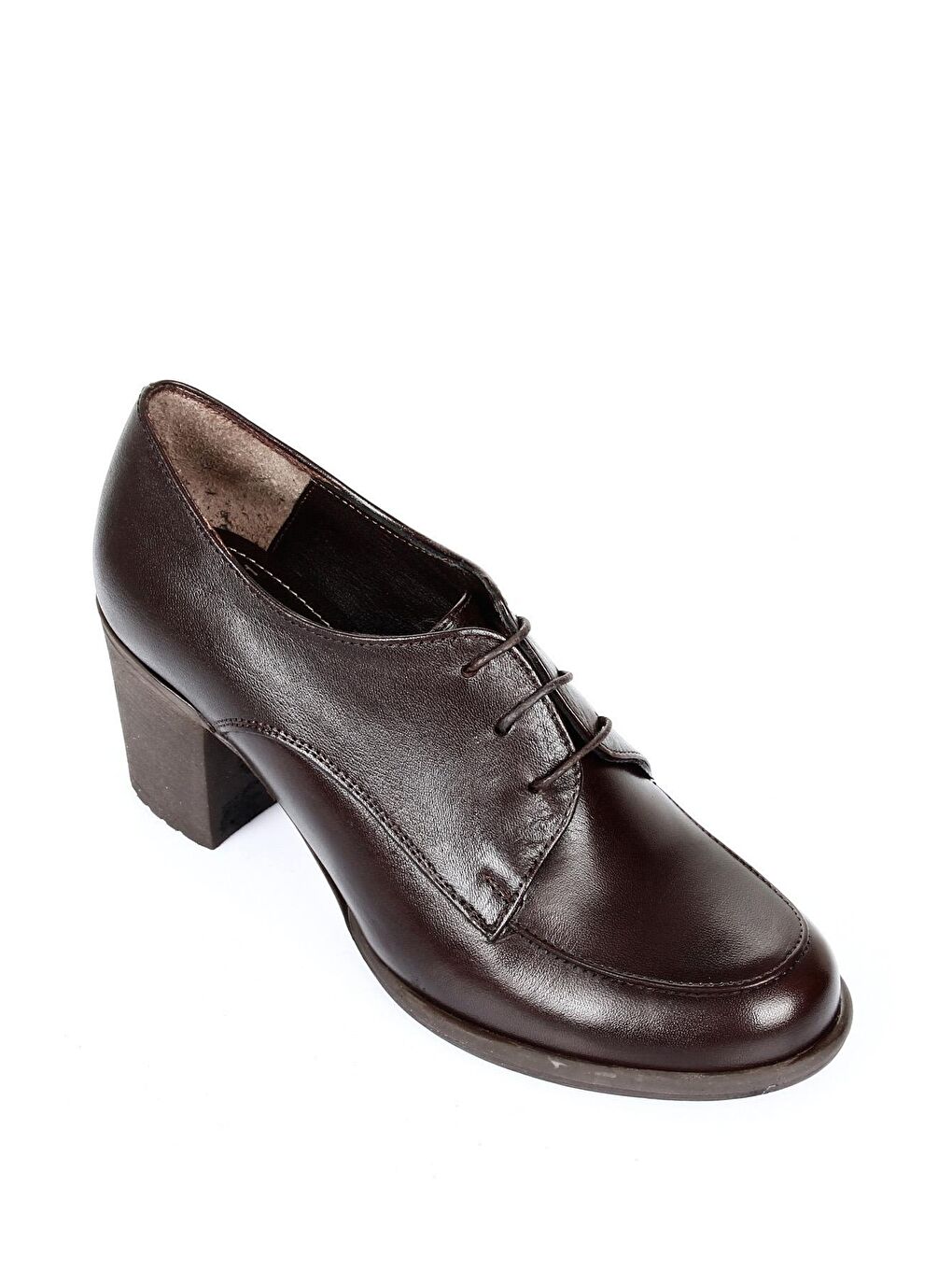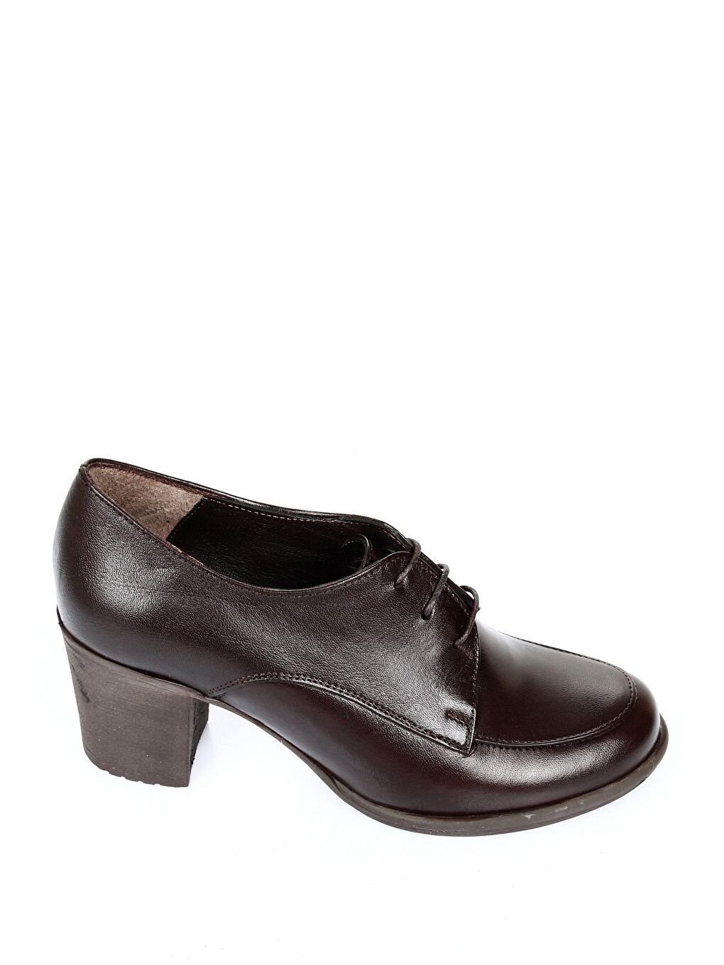 کفش زنانه قهوهای قهوهای، چرم اصل، پنجه گرد، پاشنه متوسط، زیره لاستیکی، بنددار، کد ۲۴۰۷۱