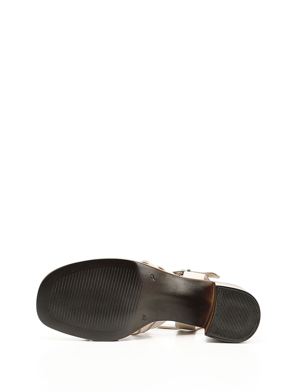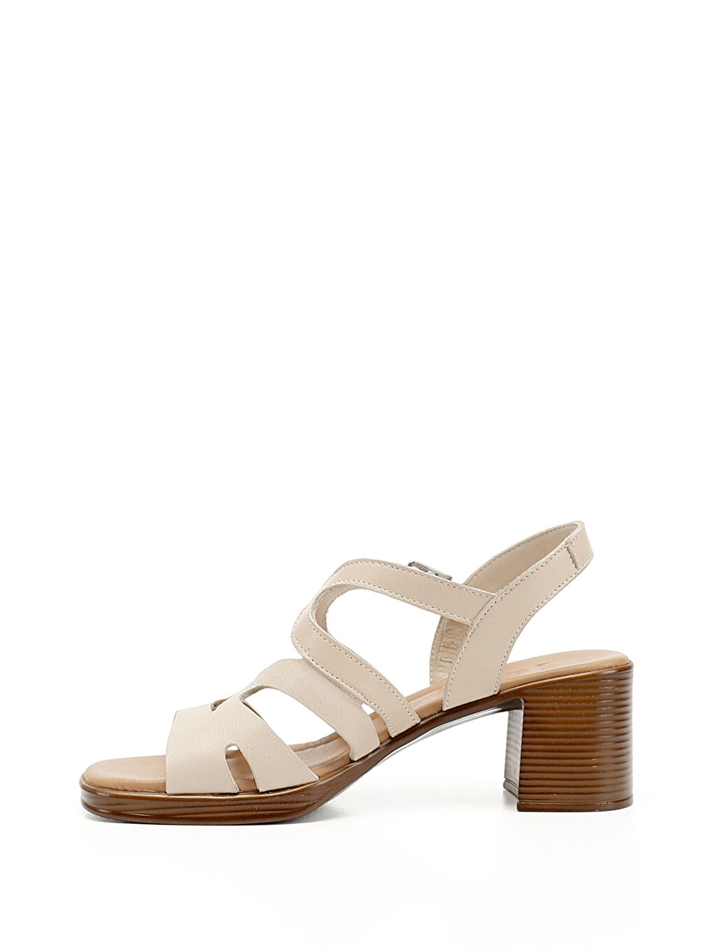 صندل زنانه پاشنه بلند ضخیم چرم اصل بژ-پوست
