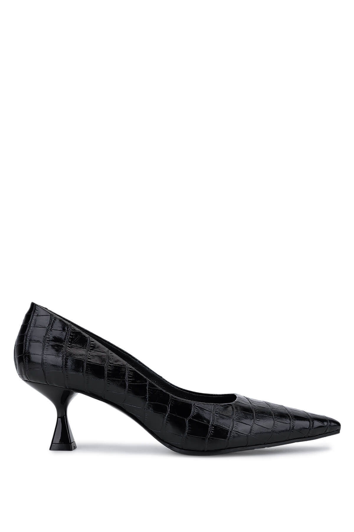 تامر تانجا کفش پاشنه کروکودیل مشکی زنانه از جنس چرم اصل