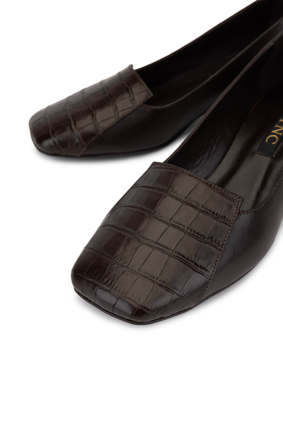 تامر تانجا کفش پاشنه بلند قهوهای چرم اصل زنانه