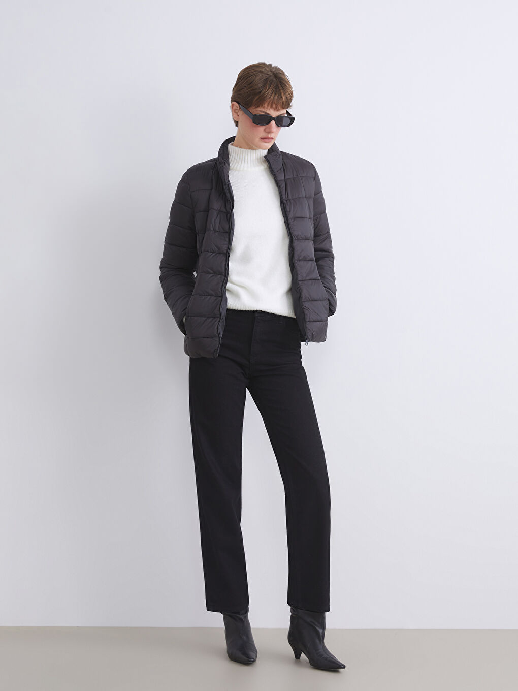 کت پفی زنانه یقه ایستاده مشکی