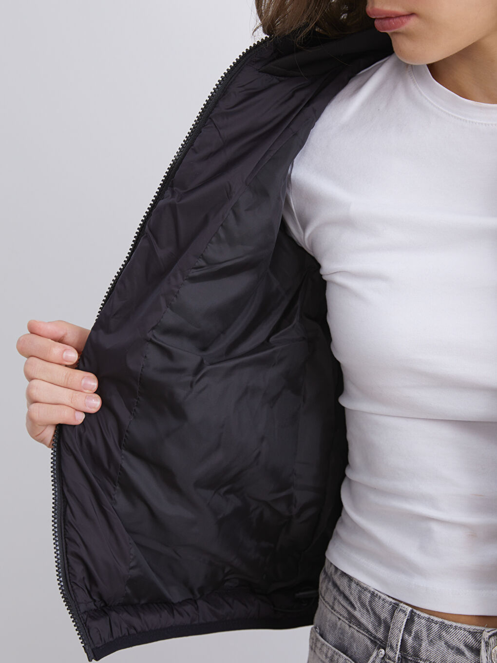 پالتو پفی زنانه کلاه دار مشکی