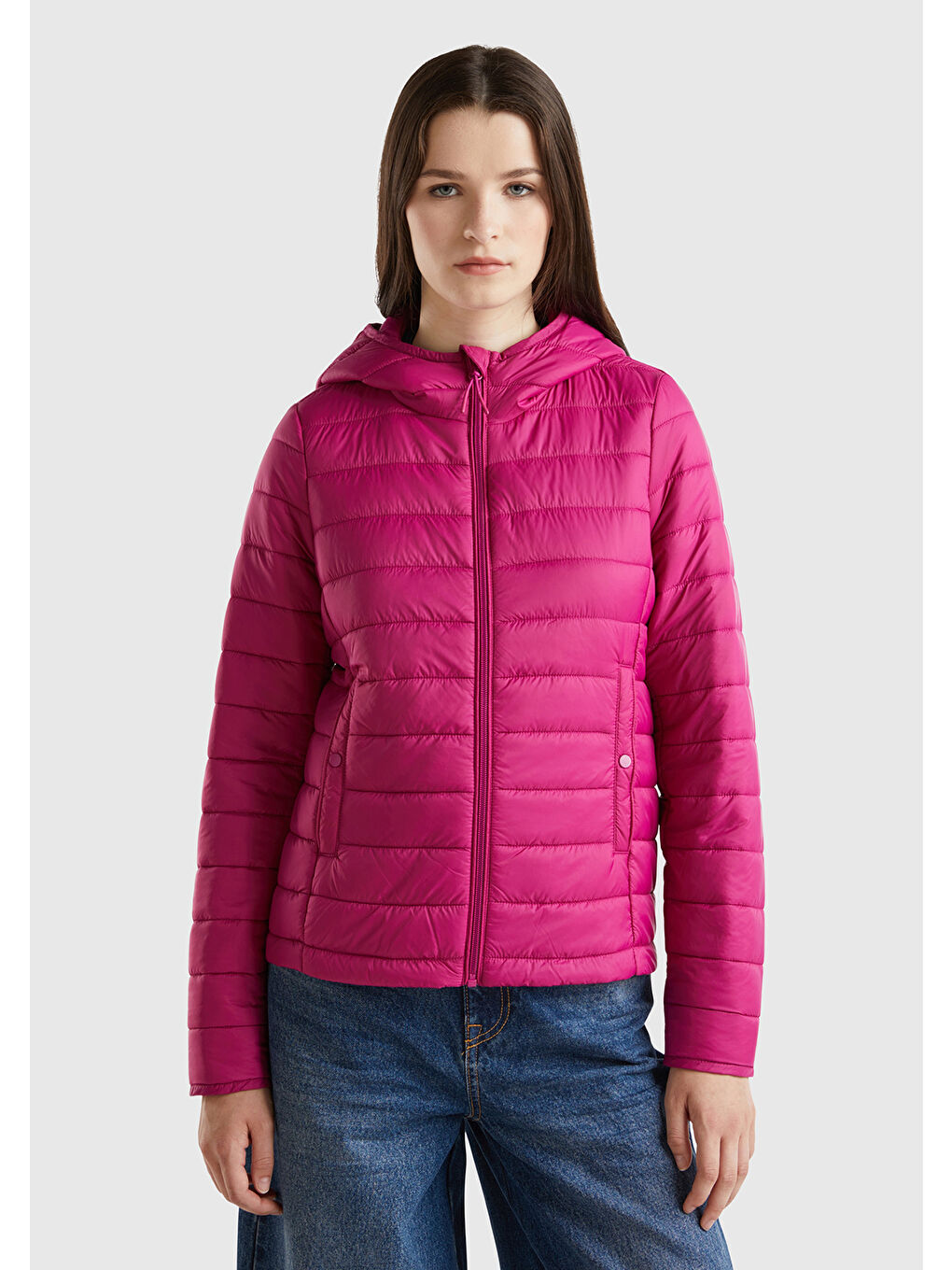 پالتو زنانه پوفا پر شده با پلی استر بازیافتی فوشیا