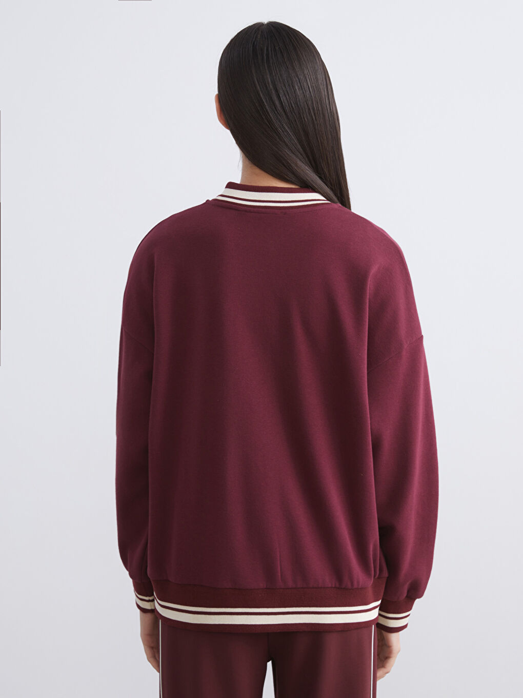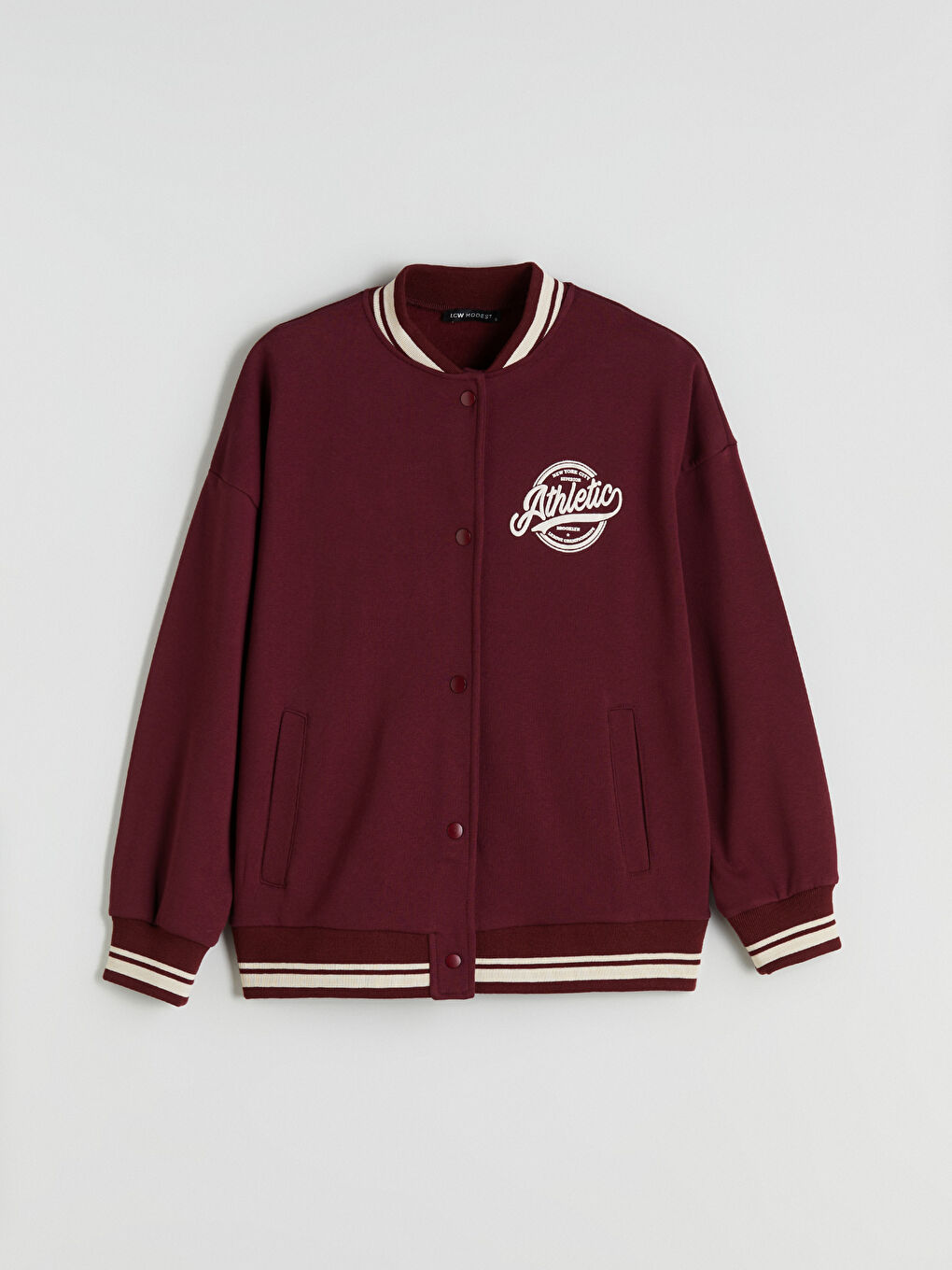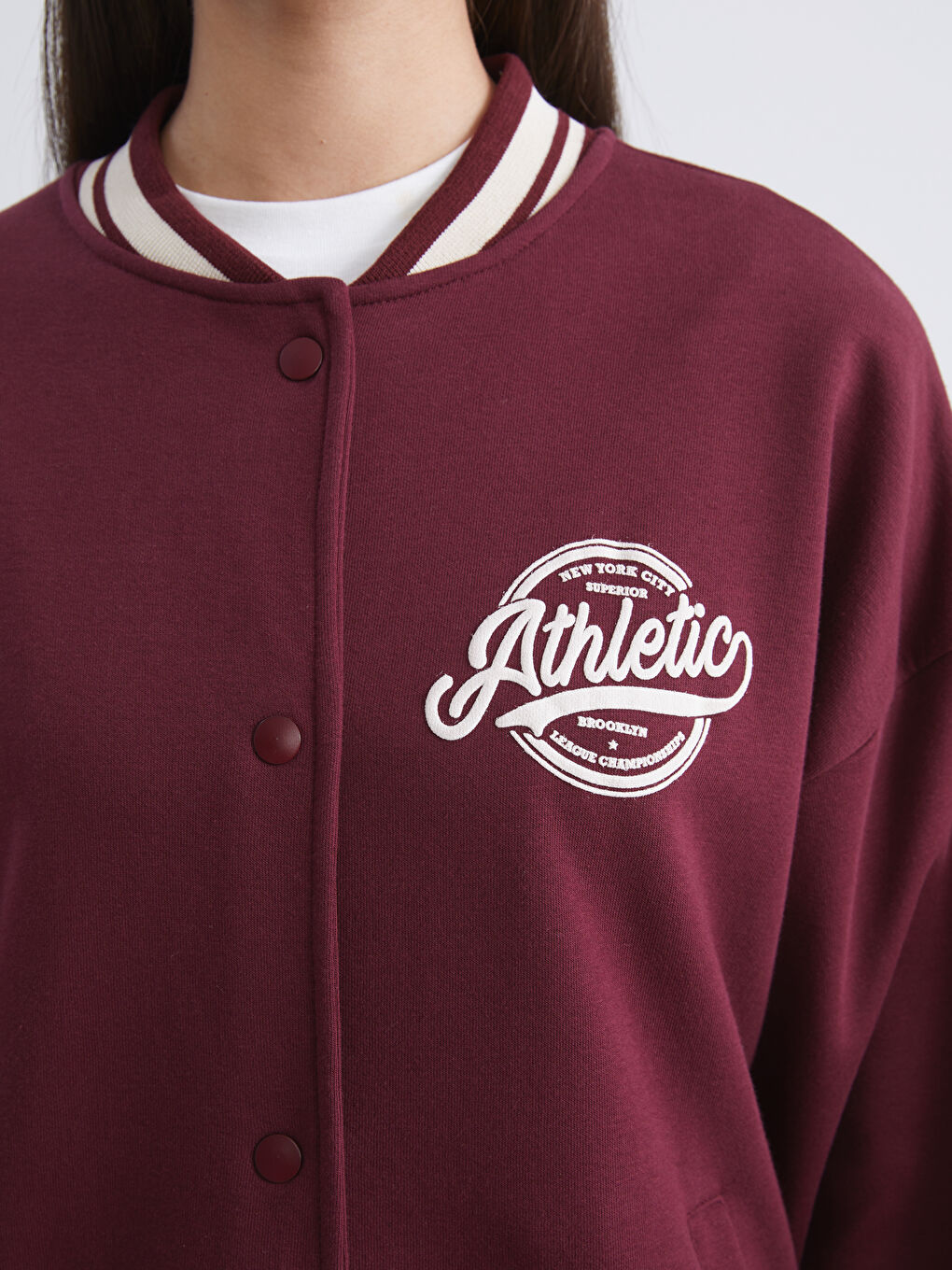کاپشن دانشگاهی ضخیم زنانه سایز بزرگ طرح‌دار زرشکی