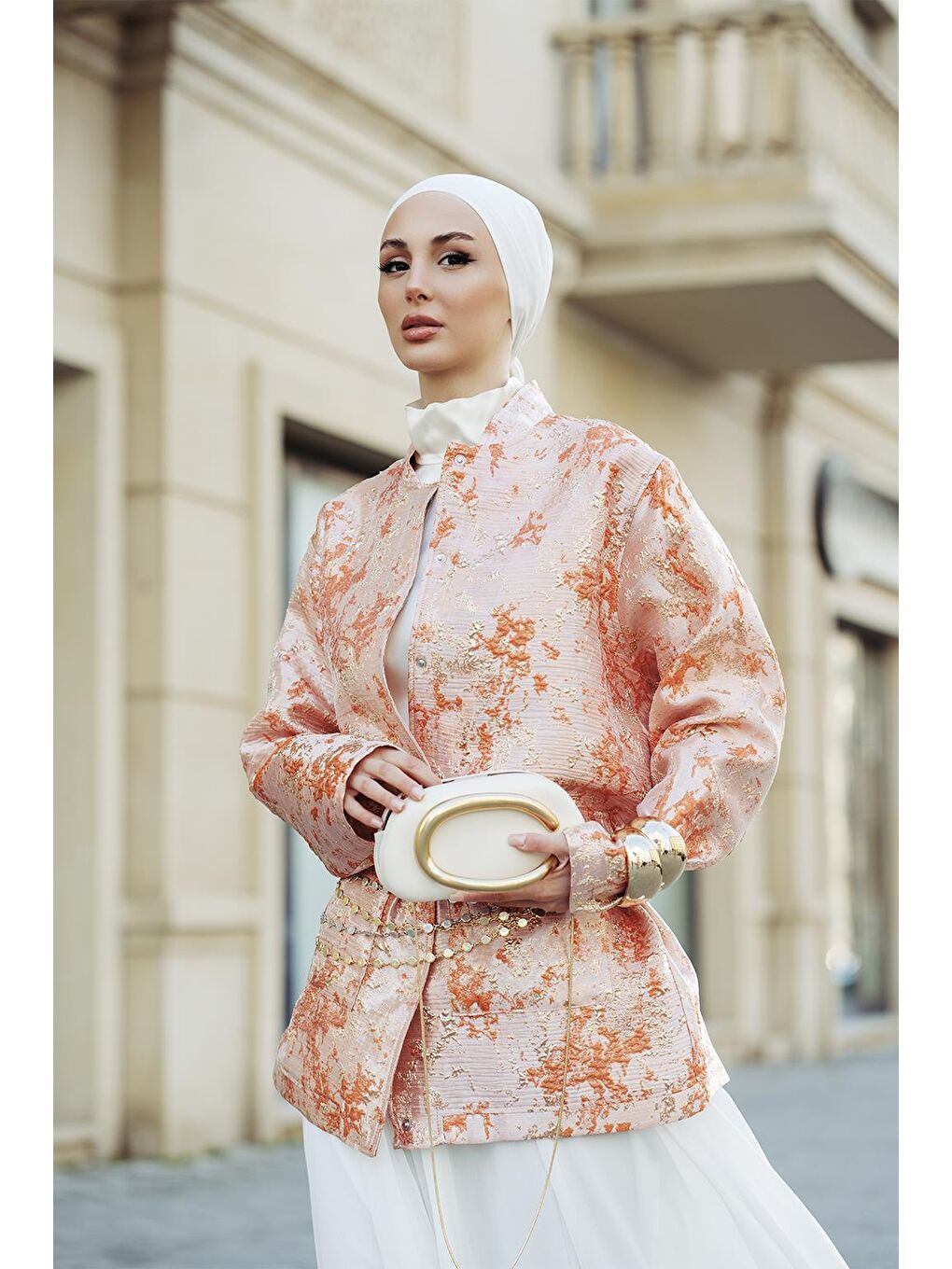 توضیحات محصول کاپشن بمبر طلایی نووی تافته با پارچه ژاکارد براق و برش بمبر مدرن، گزینهای زیبا برای استفاده روزانه و مناسبتهای خاص ارائه میدهد. جزئیات دکمه مخفی و جیبهای کناری، کارایی را با ظرافت ترکیب میکنند، در حالی که ساختار راحت طراحی، آزادی حرکت را فراهم میکند. میتوانید ترکیبی اسپرت-شیک با شلوار جین ایجاد کنید یا با دامنهای پلیسه، استایلی مدرن را به نمایش بگذارید. این کاپشن با طرح زیبا و بافت سبک خود، به یک قطعه کلیدی جاودانه در کمد لباس شما تبدیل خواهد شد! ویژگیهای محصول: پارچه ژاکارد طرحدار براق، یقه ایستاده، دکمه مخفی، جیبهای کناری، کاپشن بمبر. محتوا و مراقبت: ۸۰٪ PES، ۲۰٪ اکلیل. قابل شستشو با ماشین لباسشویی در دمای پایین. برای خشک شدن، روی سطح صاف قرار دهید. میتوان آن را از داخل و در دمای پایین اتو کرد. اندازههای دست ممکن است ۲-۳ سانتیمتر متفاوت باشد. اندازههای مدل: قد ۱۷۷ سانتیمتر، سینه ۶۹ سانتیمتر، باسن ۸۹ سانتیمتر. محصول روی مدل ۱ سایز است. ۱ سایز برای سایز ۳۶/۳۸ مناسب است – ۲ سایز برای سایزهای ۴۰/۴۲ مناسب است.