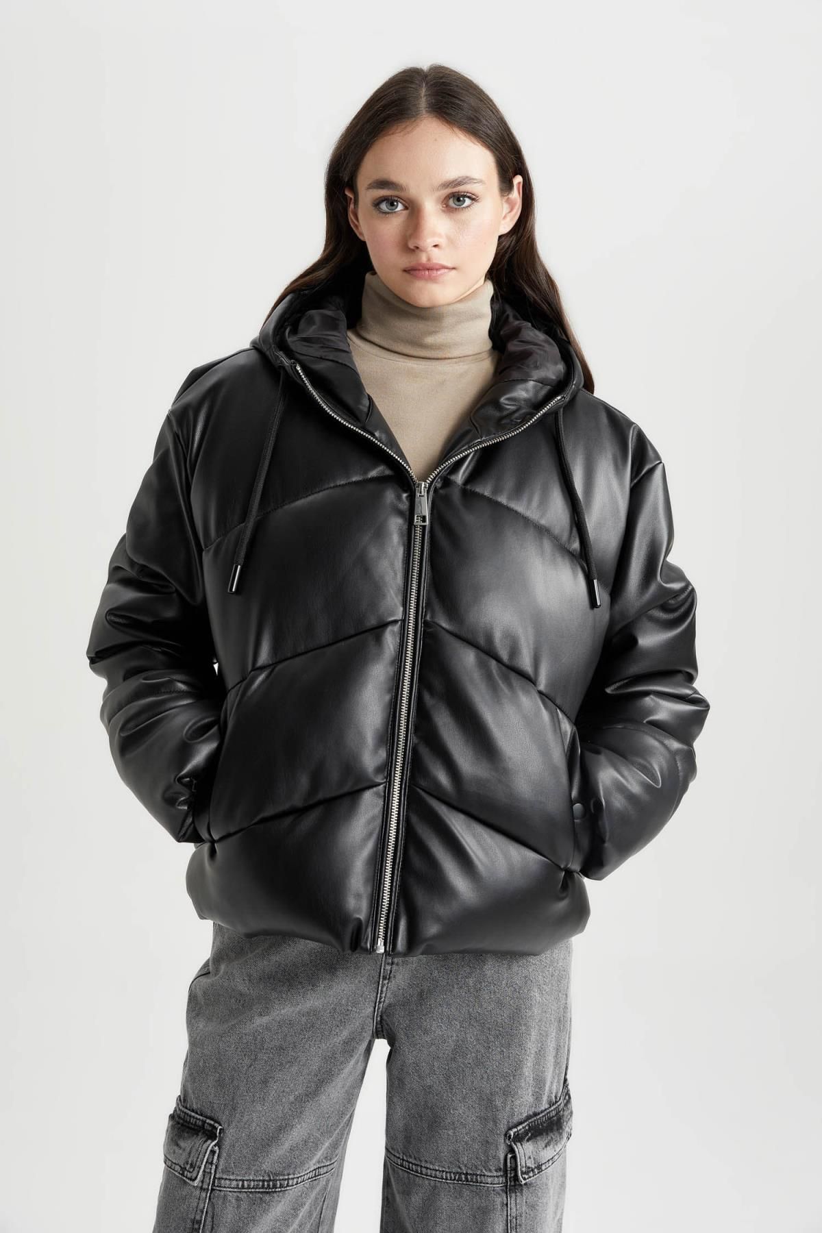 دفاکتو کت چرم مصنوعی کلاهدار معمولی A0804ax23wn ضد آب