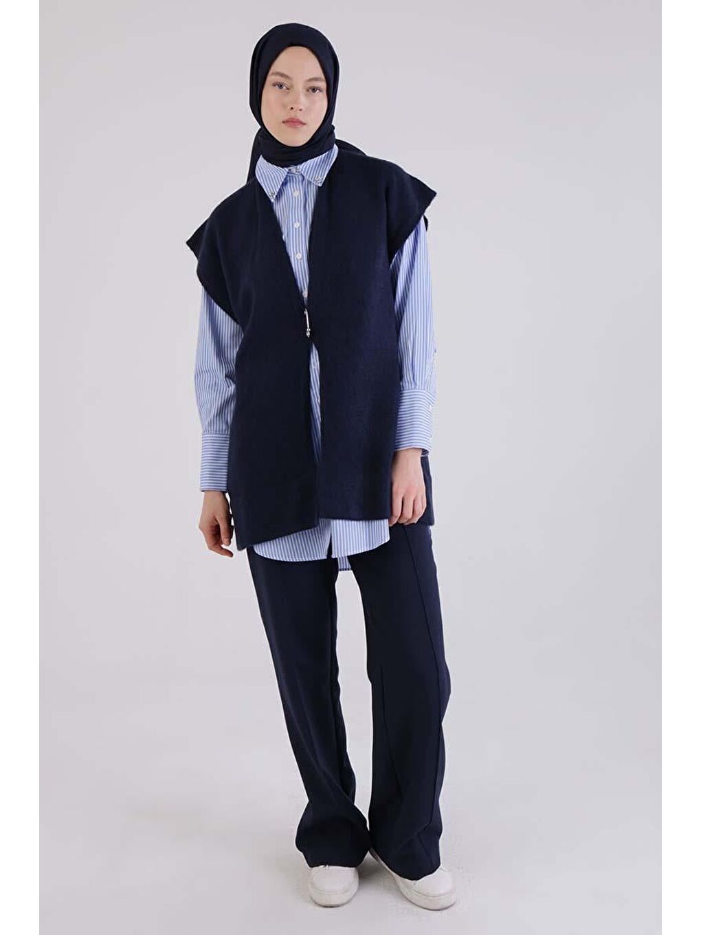 با جلیقه بافتنی سرمه‌ای طرح گلدار، استایلی مدرن و راحت داشته باشید
