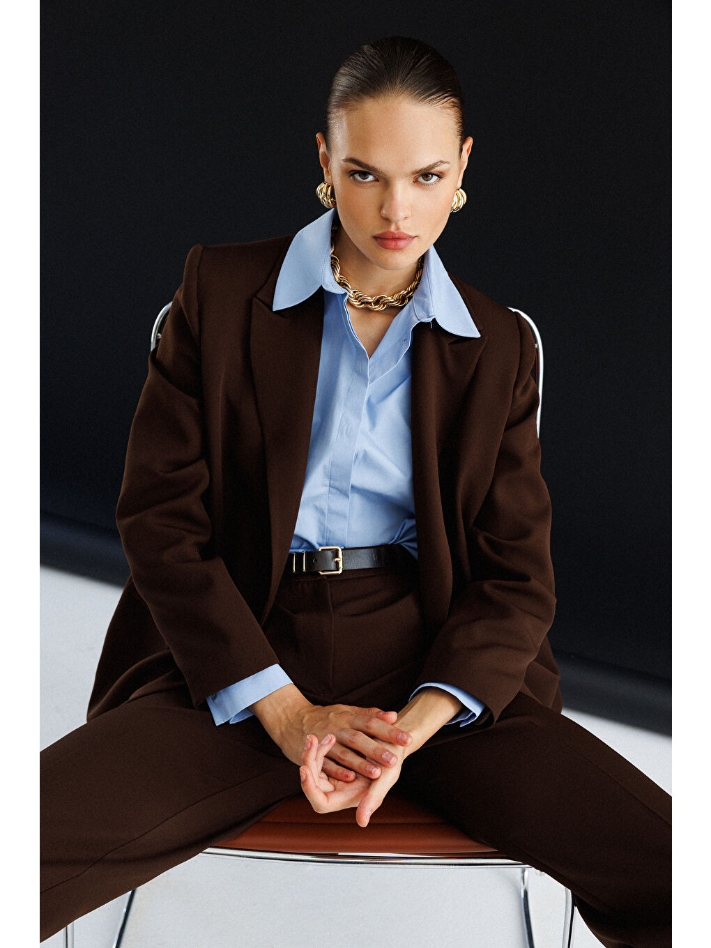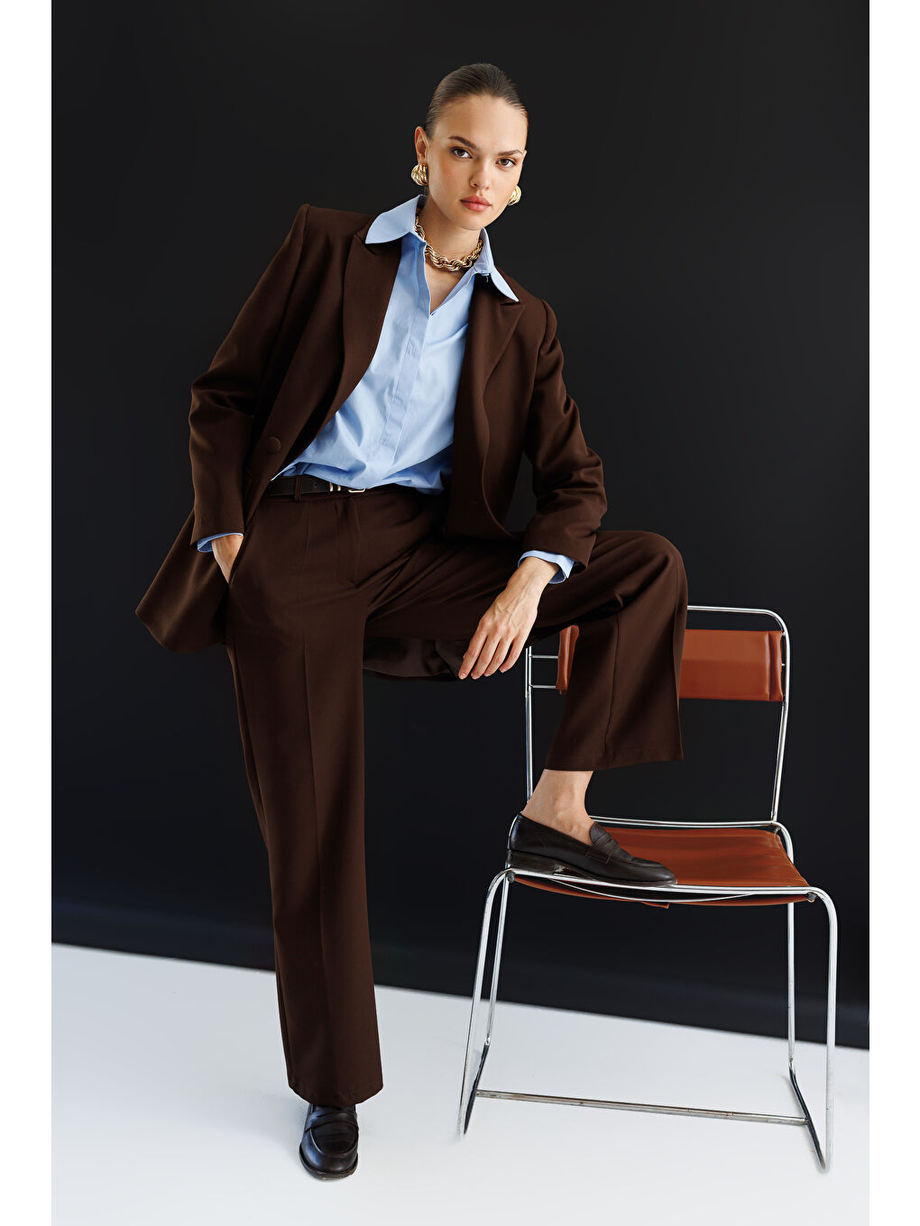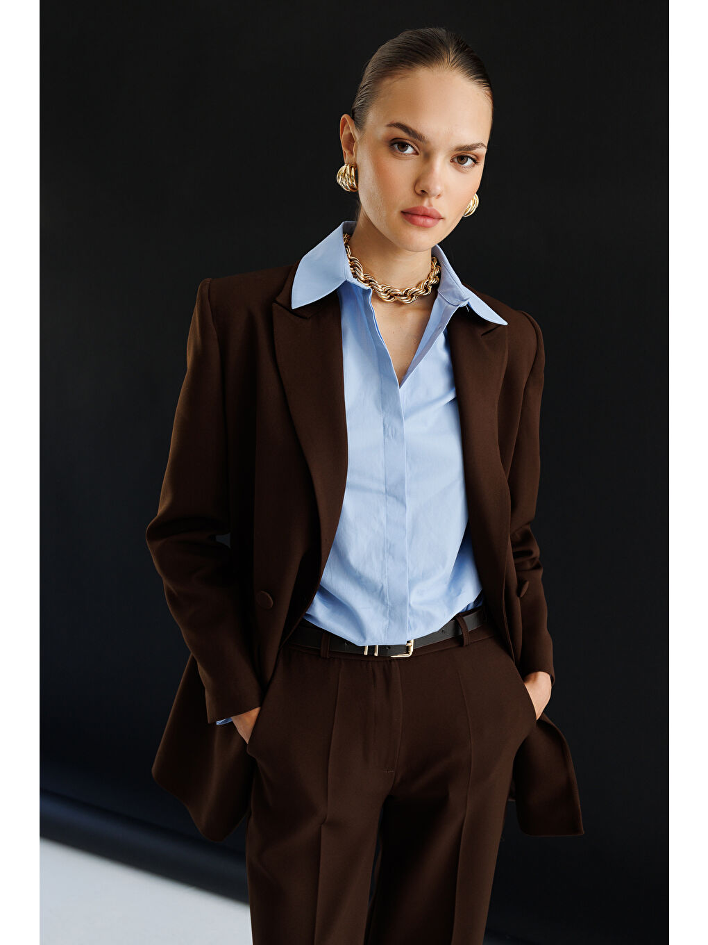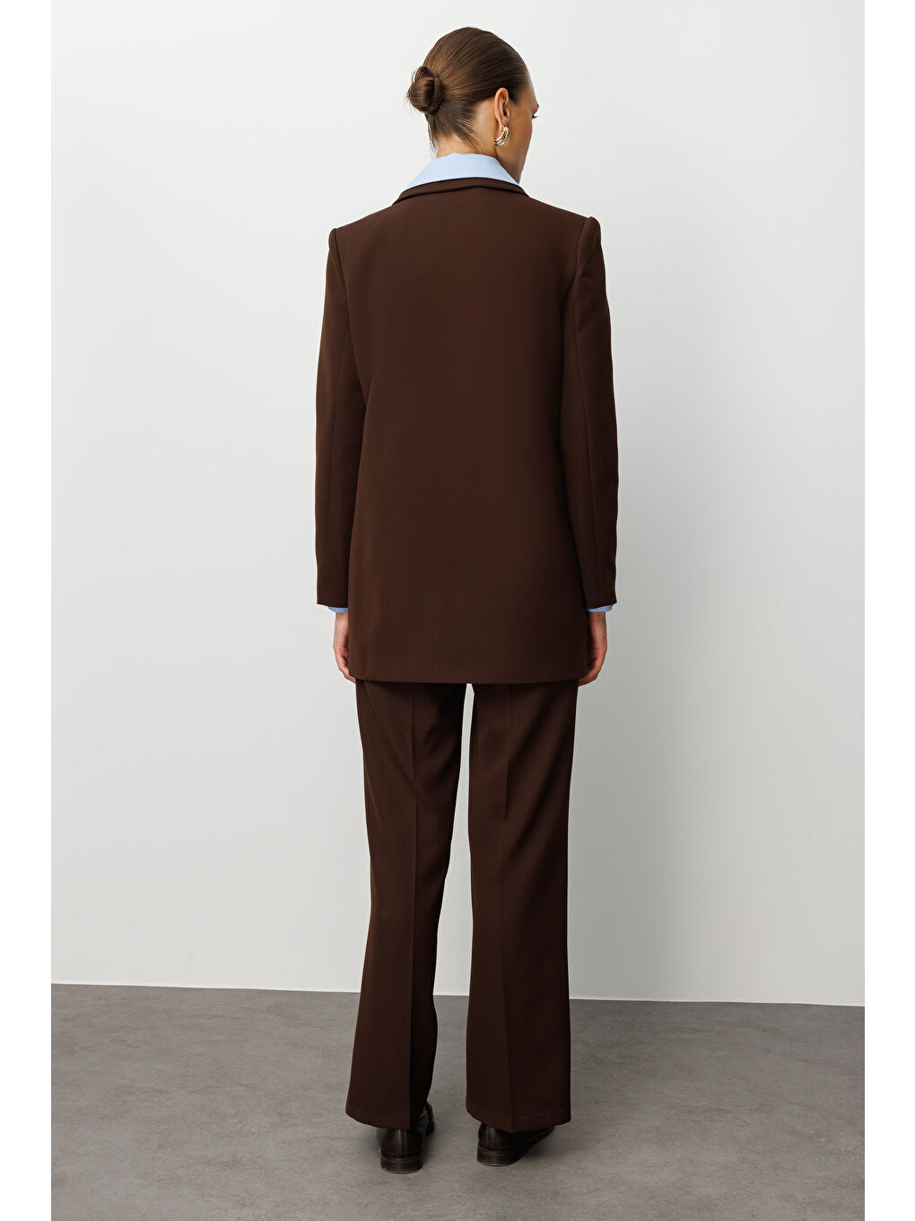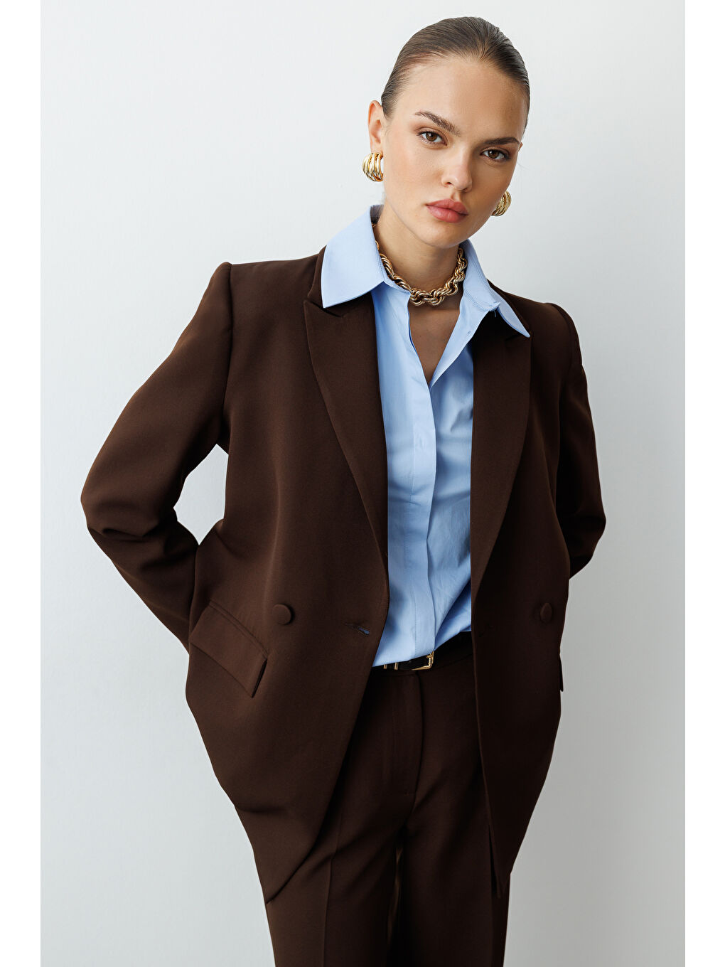 ژاکت بلیزر قهوه‌ای بزرگ دو دکمه