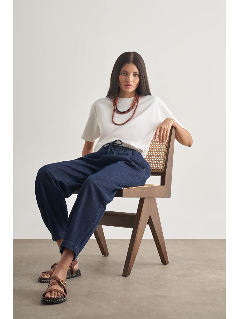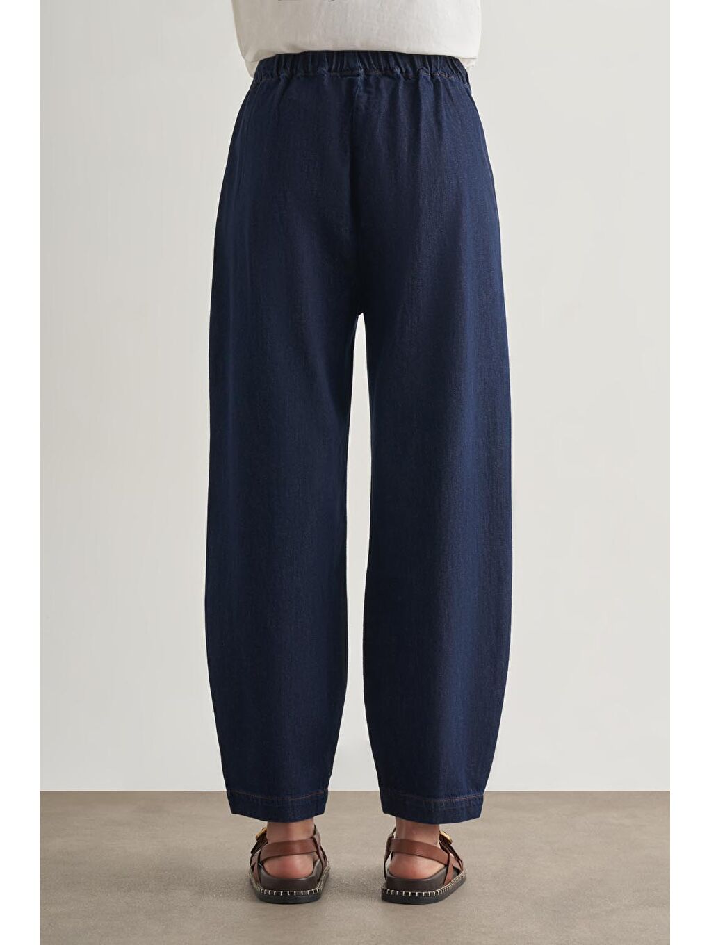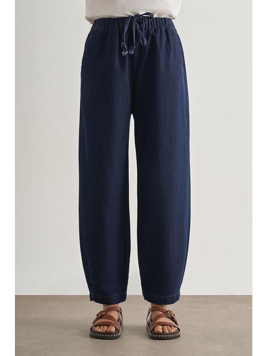 شلوار جین سرمه‌ای طرح بالون فیت با کمر کشی