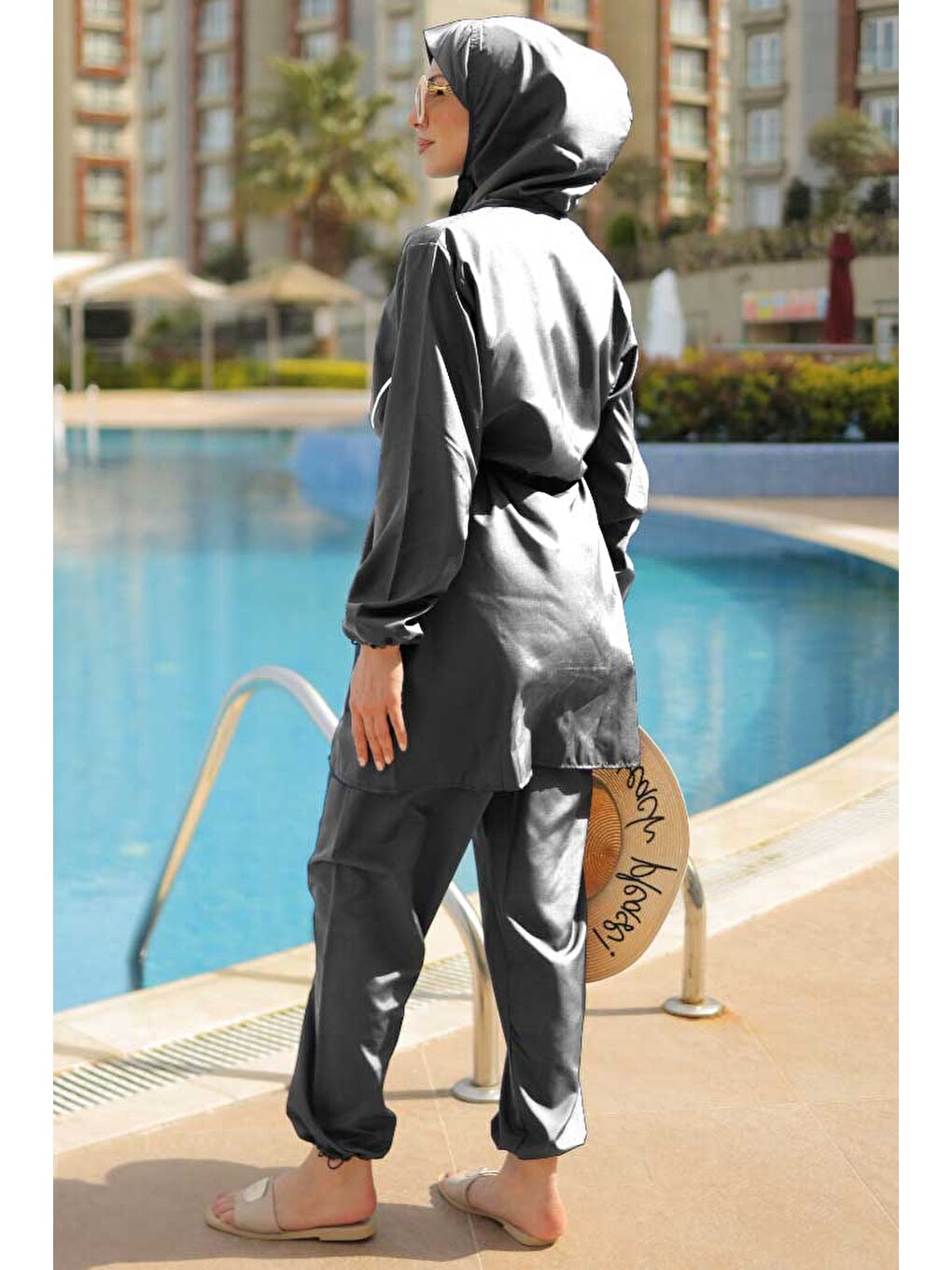 ست لباس شنا حجاب خاکستری دودی – 27096