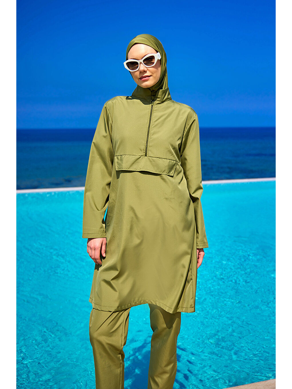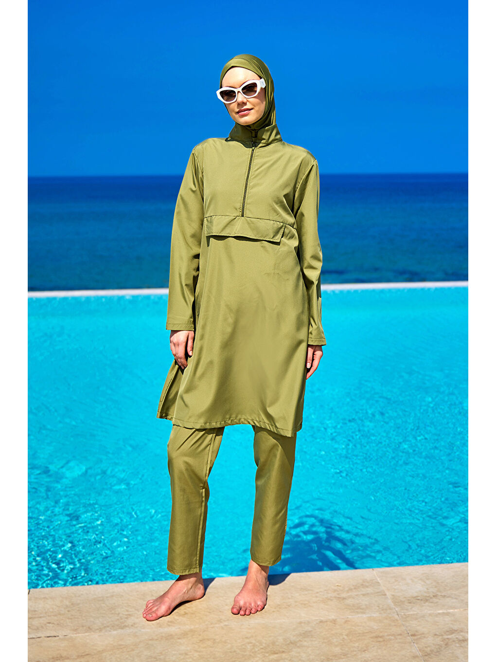 لباس شنا حجاب سبز، ست ۳ تکه، دافع آب، کاملاً پوشیده، A2503-5