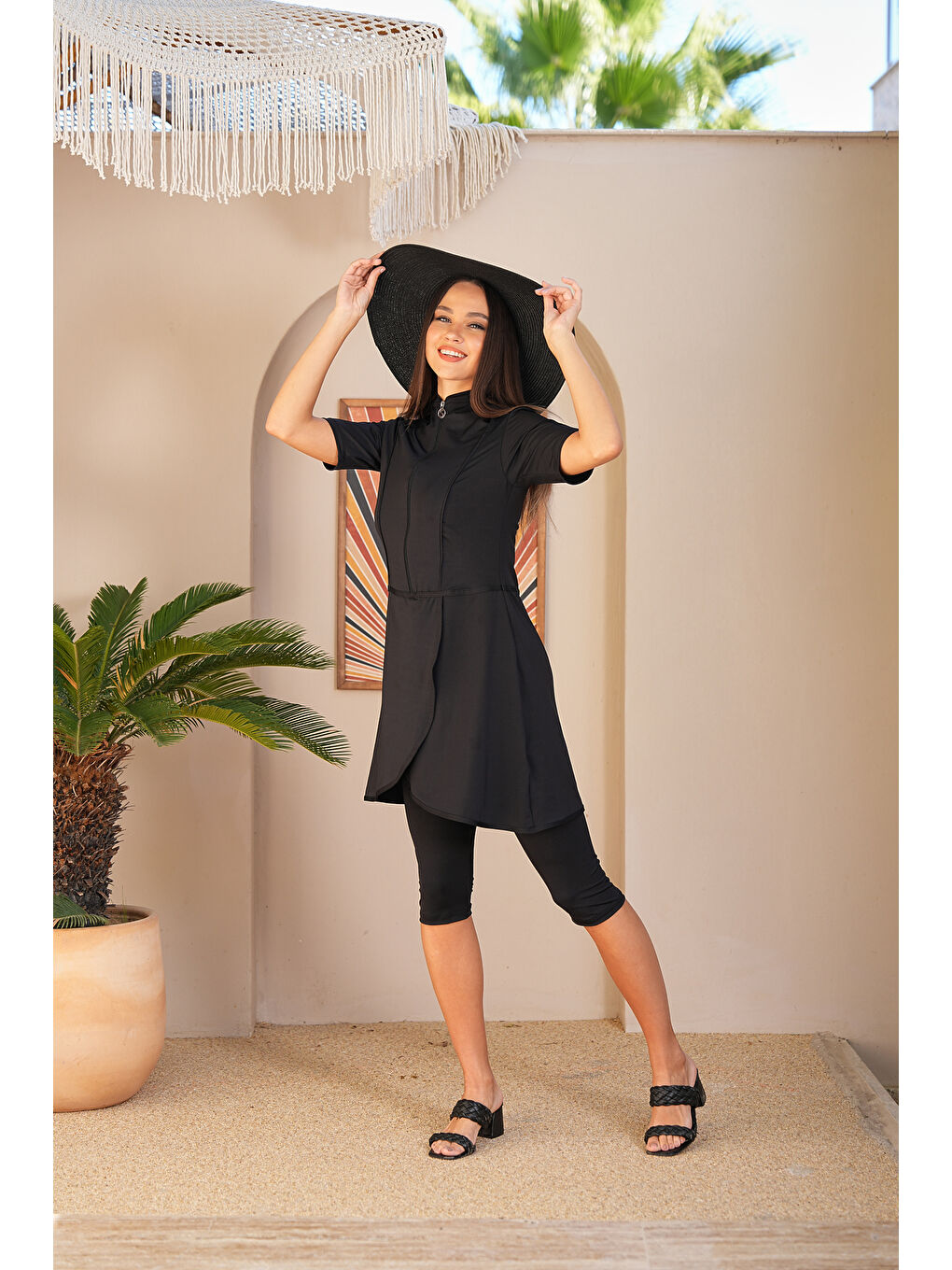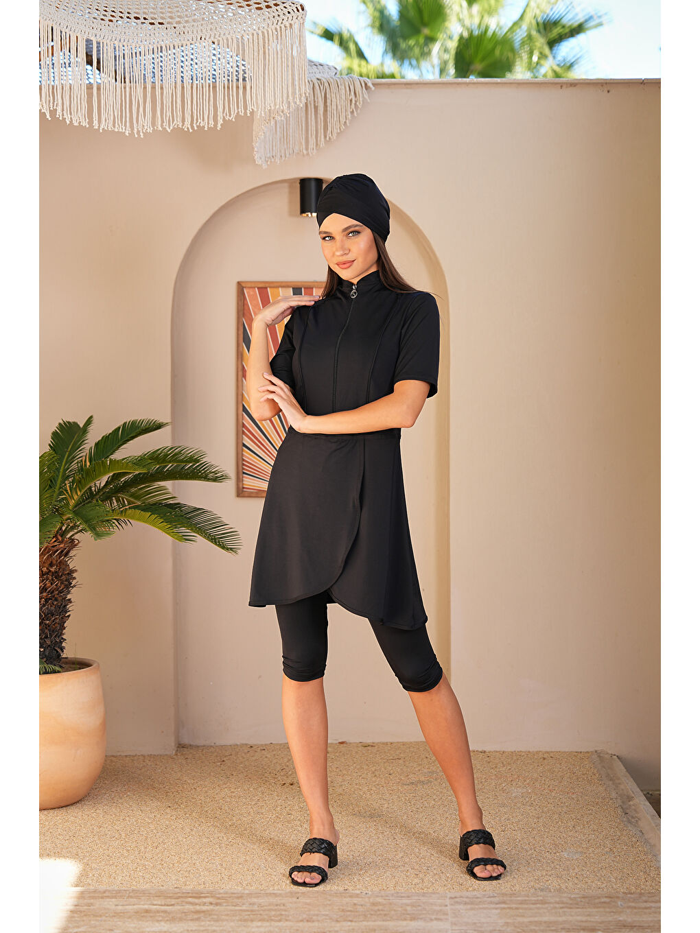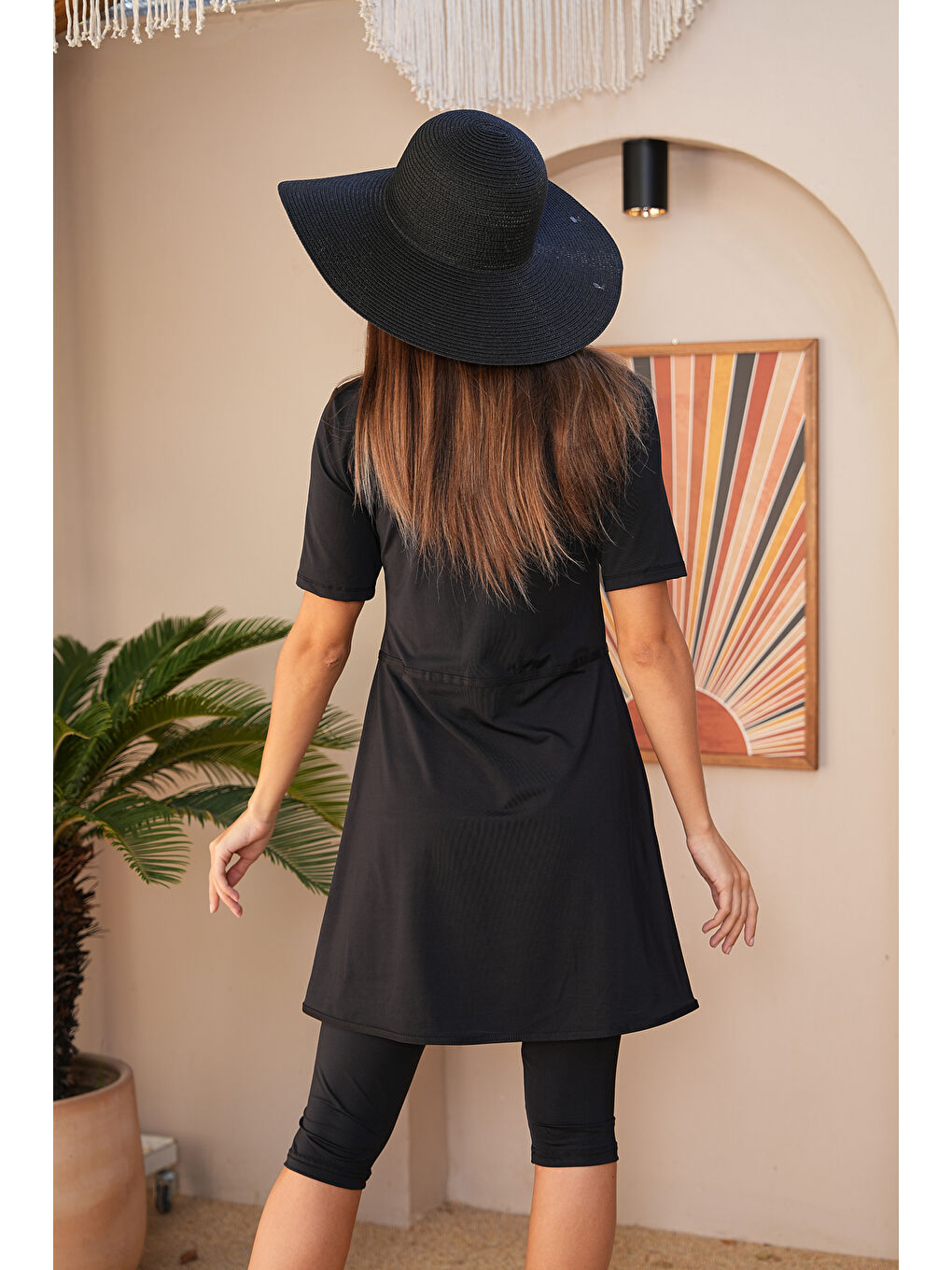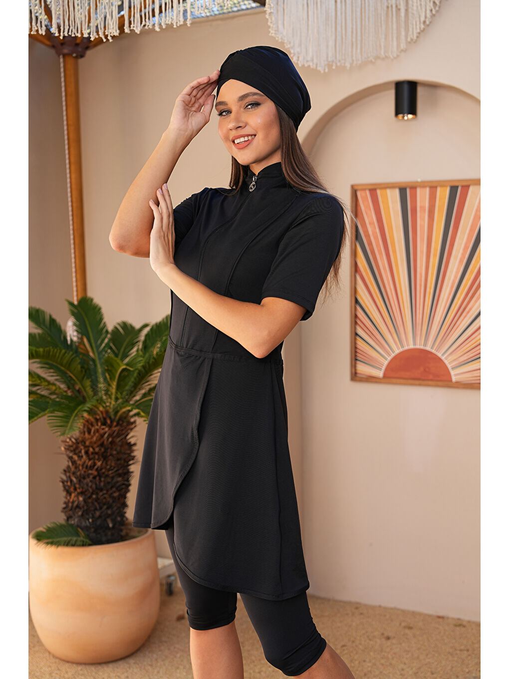 مایو حجاب نیمه پوشیده آستین کوتاه مدل پارئو مشکی ۲۲۰۰