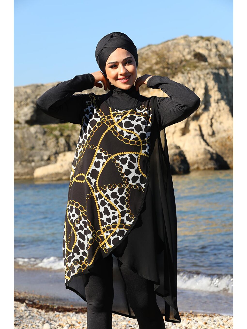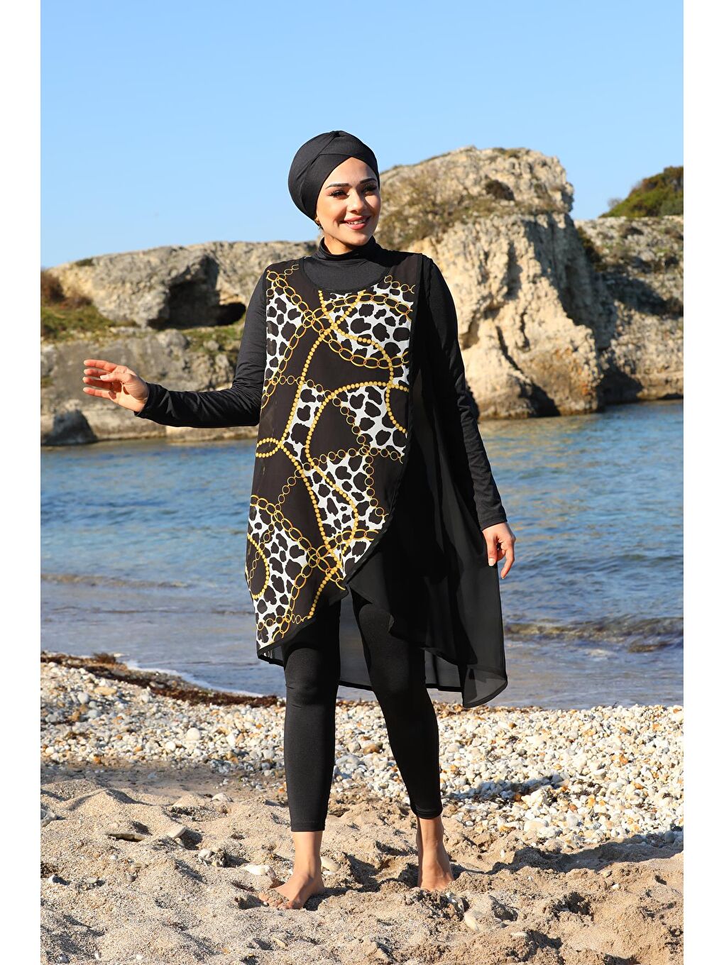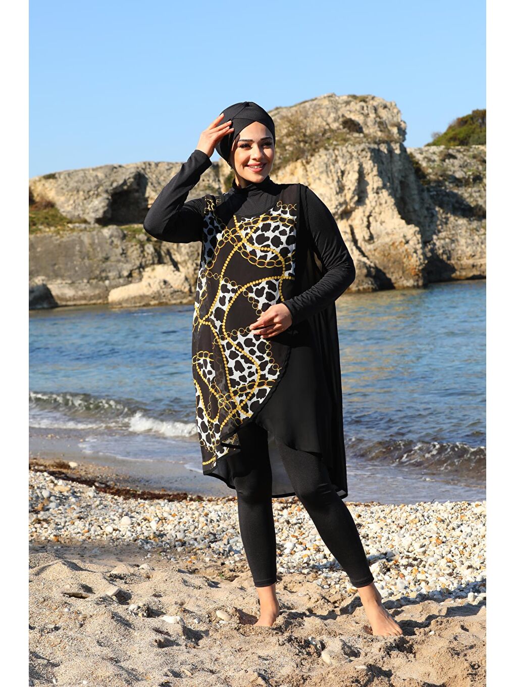 جوراب شلواری مشکی مدل Pareo ساده، پوشیده با حجاب، مایو ۳۳۹۰