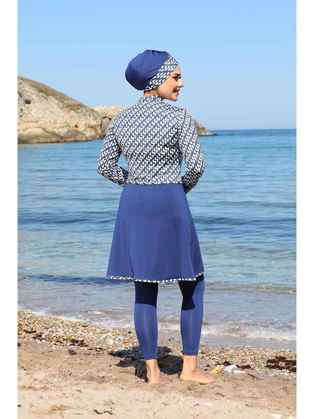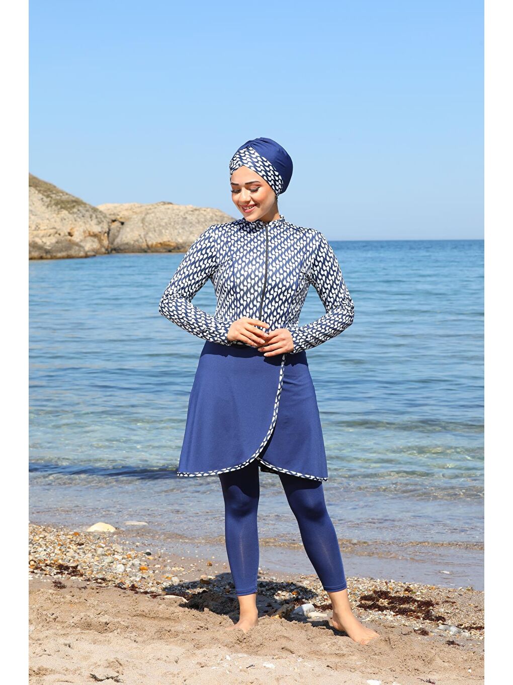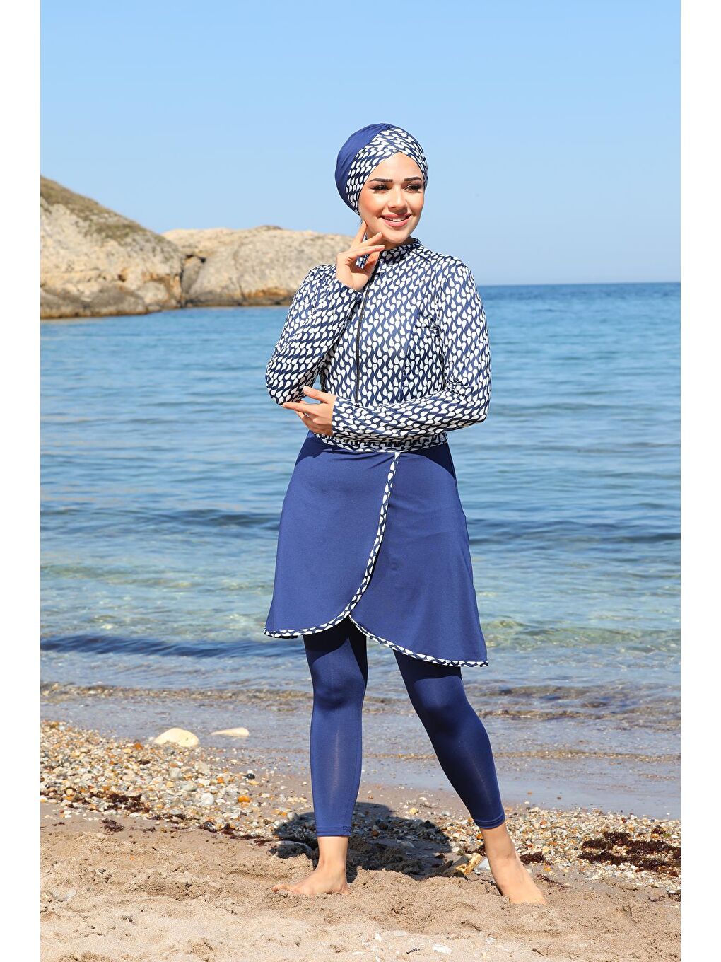 جوراب شلواری مدل پارئو طرح قطرهای سرمهای، لباس شنای حجابدار ۳۳۵۰