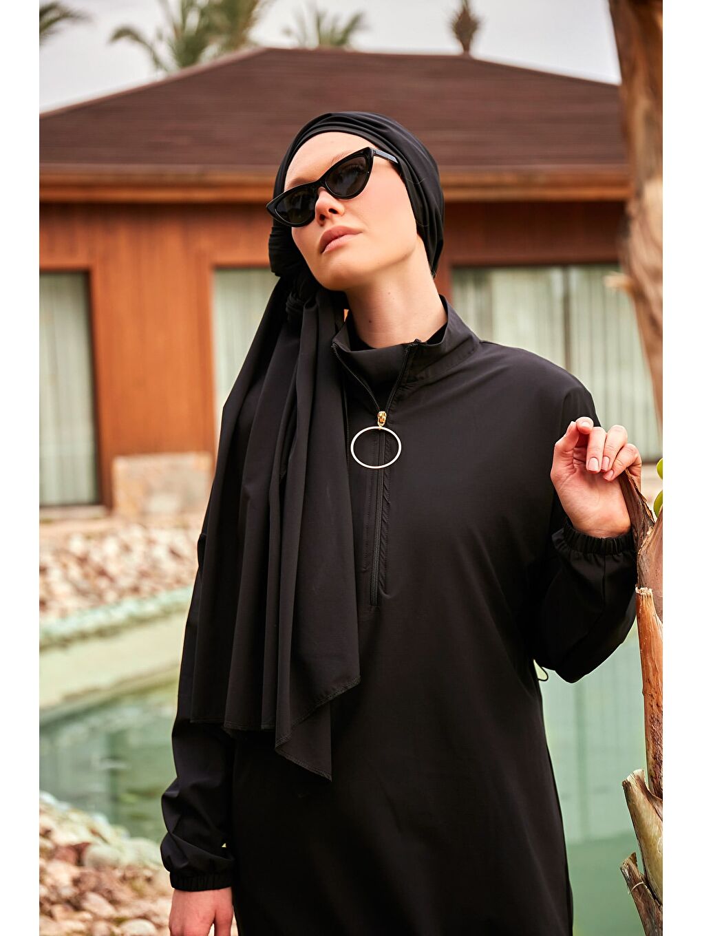 لباس شنا حجاب کاملاً پوشیده مشکی پارچهای چتر نجات M2402