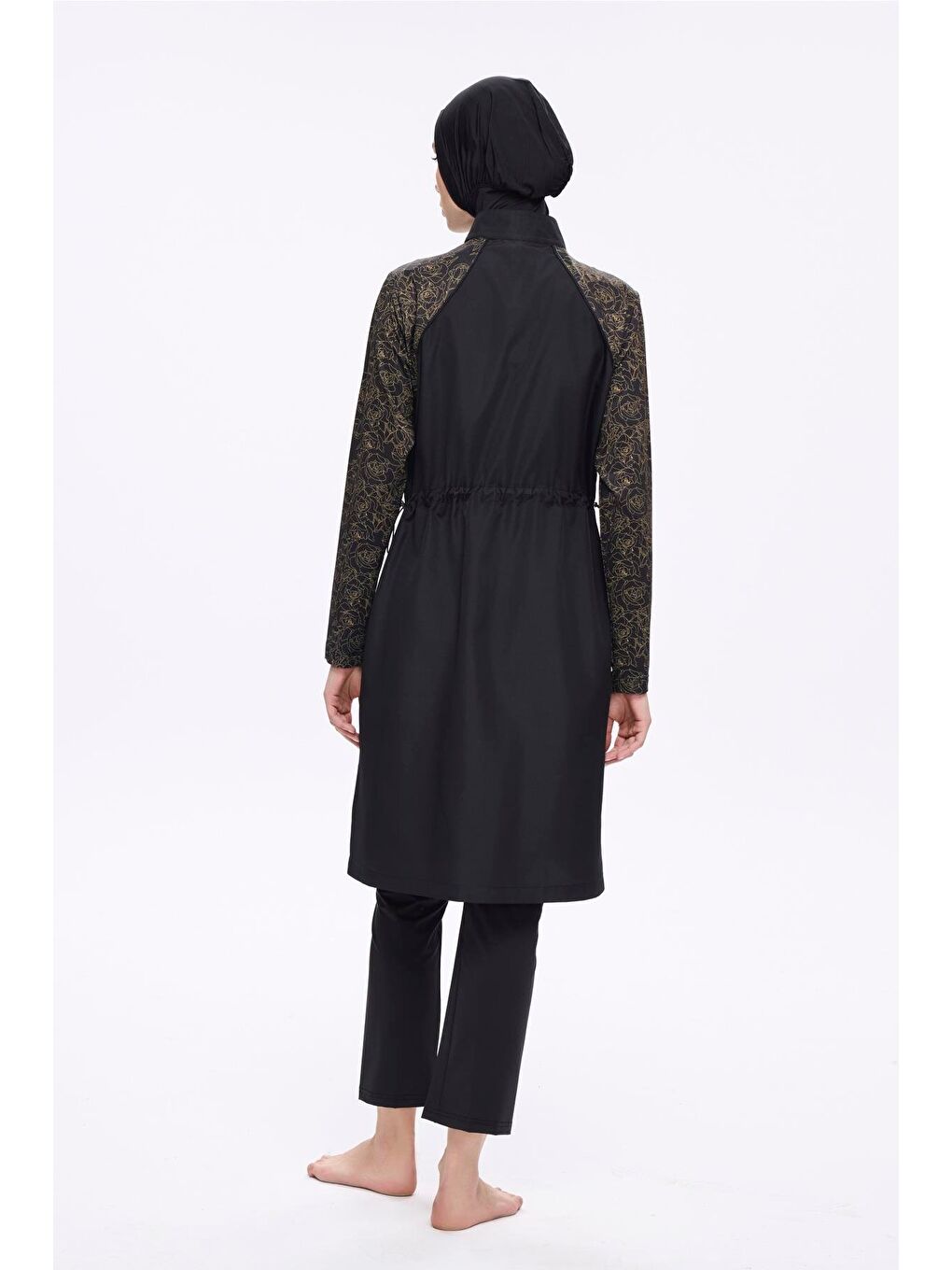 ست مایو سه تکه مشکی بافته شده با حجاب کامل و آستینهای طرحدار ۲۲۷۳