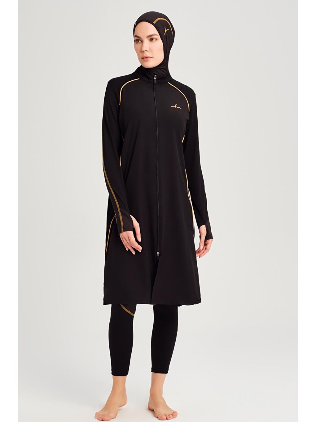 ست لباس شنا 4 تکه مشکی با حجاب کامل سری Performance مدل لانه زنبوری، مدل H-Per50، سال 2002