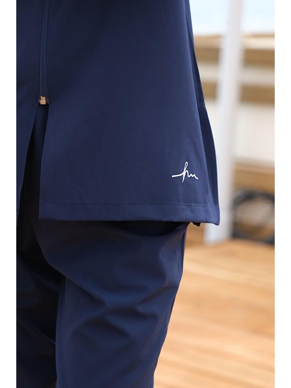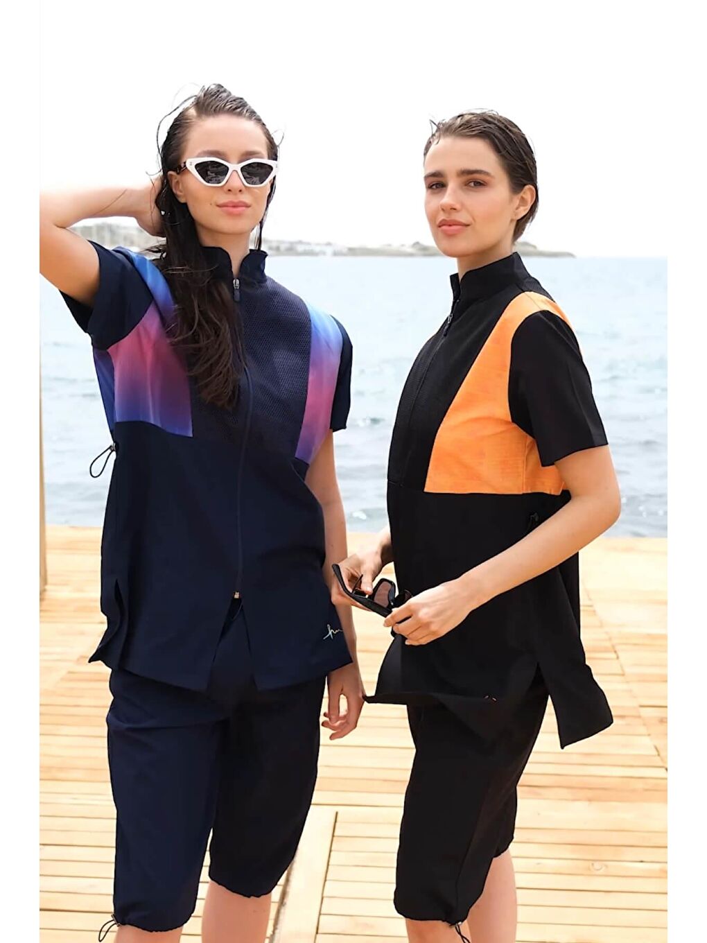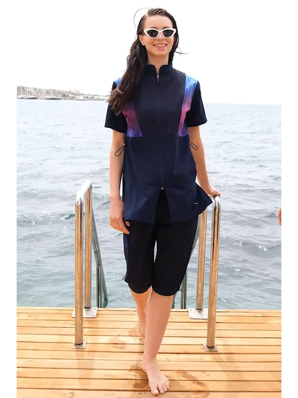 ست مایو آستین کوتاه آبی سرمهای مشکی ۴ تکه نیمهپوش ۵۰۰۳
