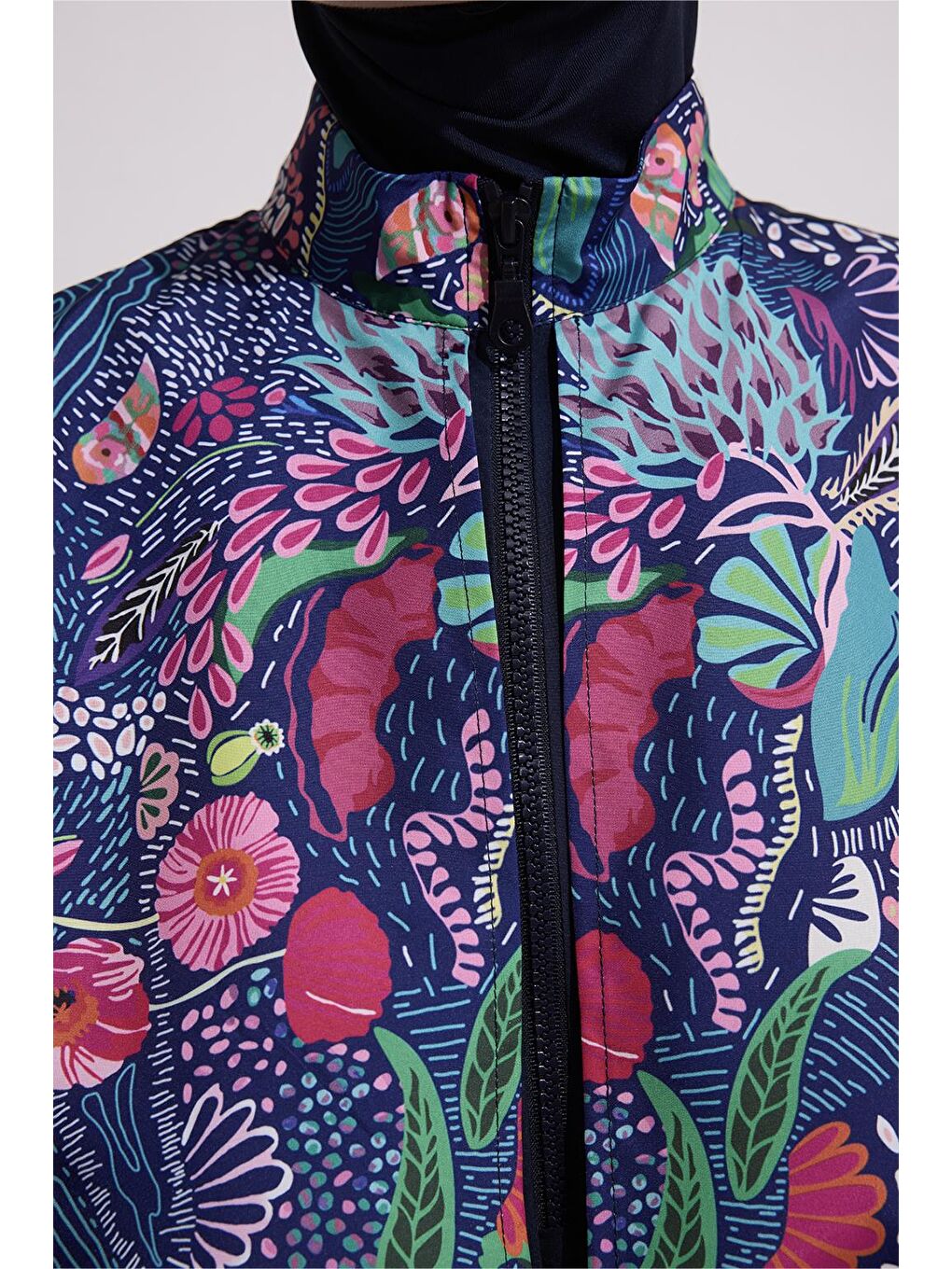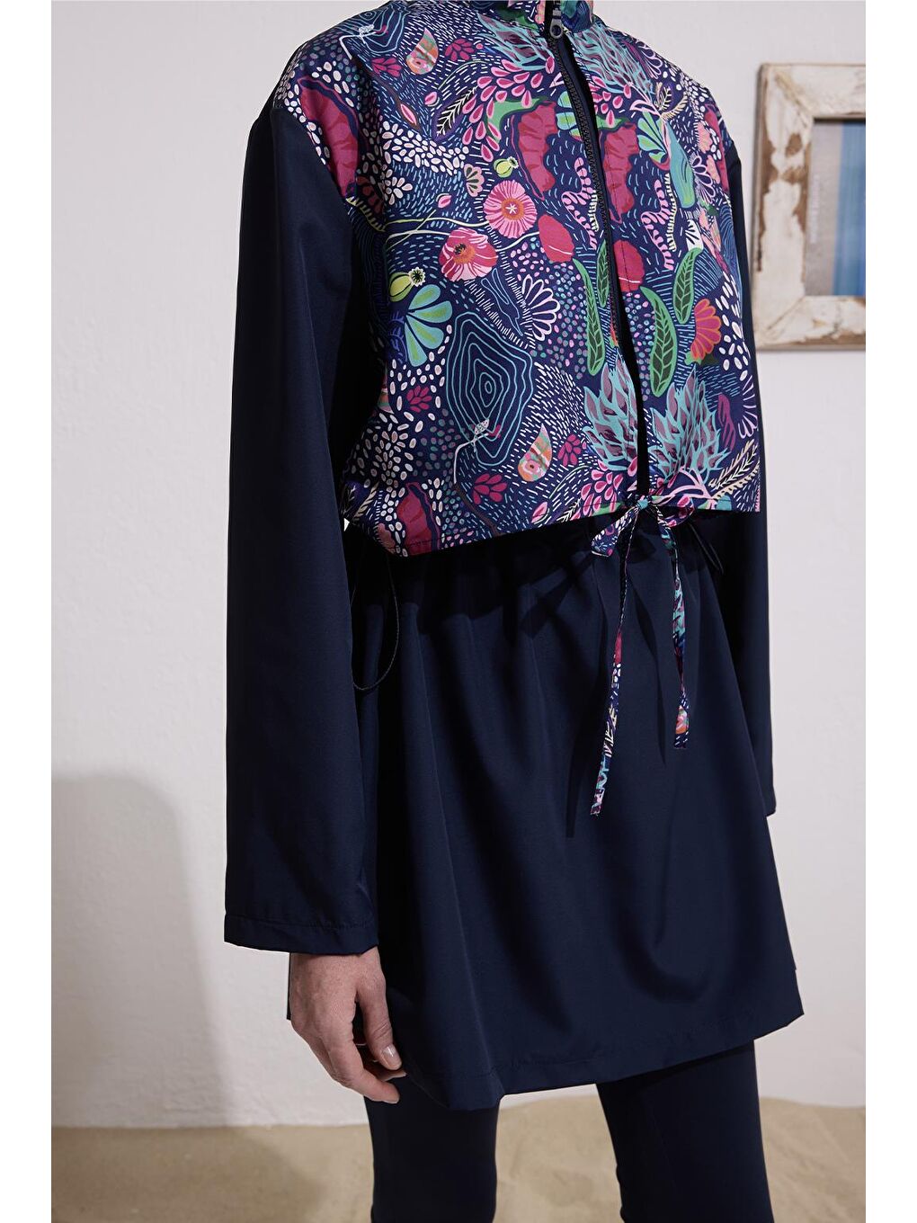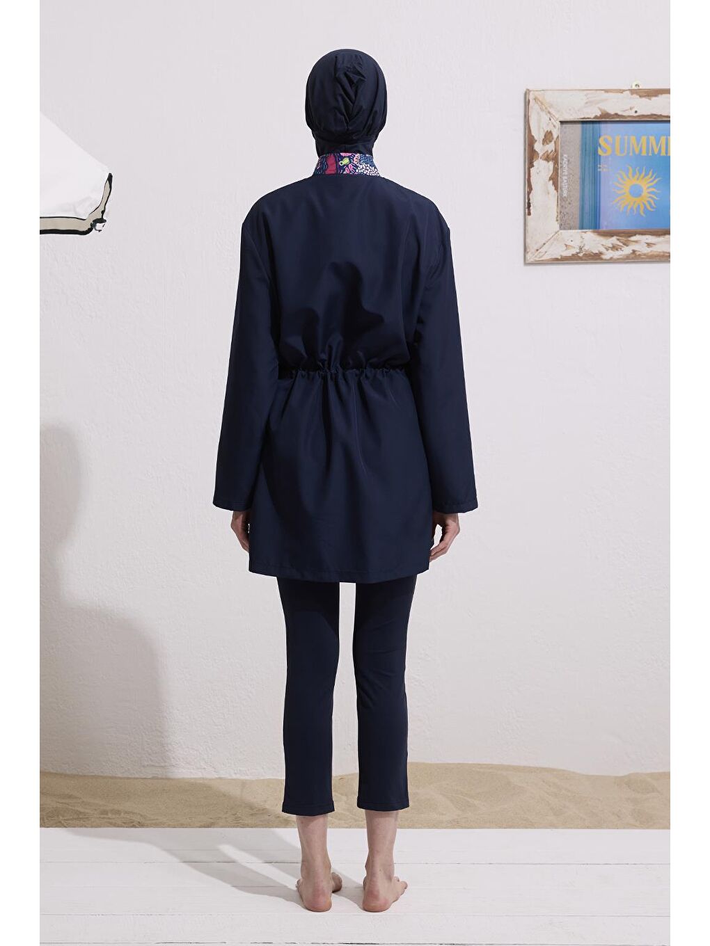 ست لباس شنا حجاب گره خورده طرح دار چتر نجات سرمه ای
