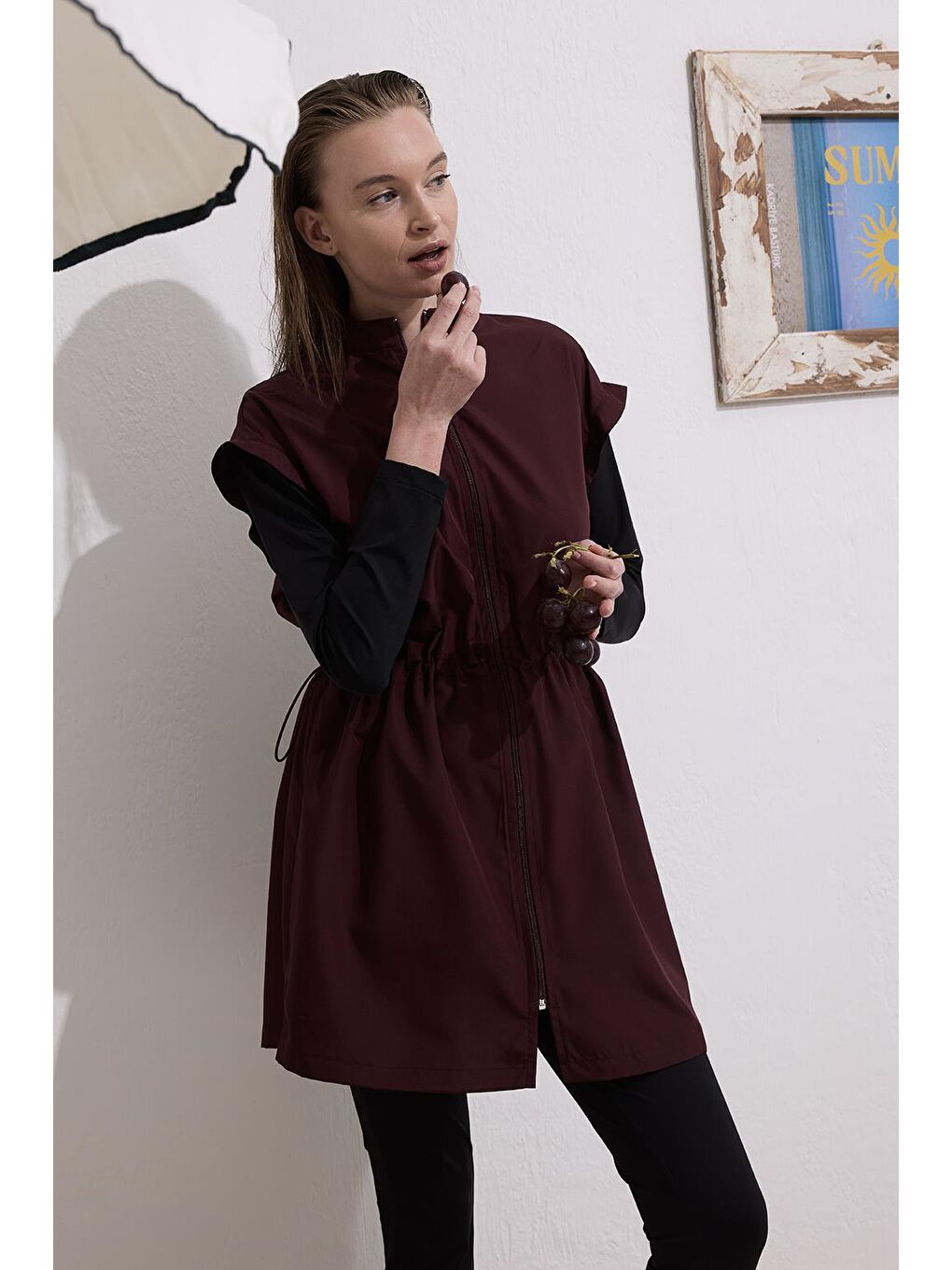 ست لباس شنا حجاب با بند کمر چتر نجات و زیپ دار به رنگ زرشکی