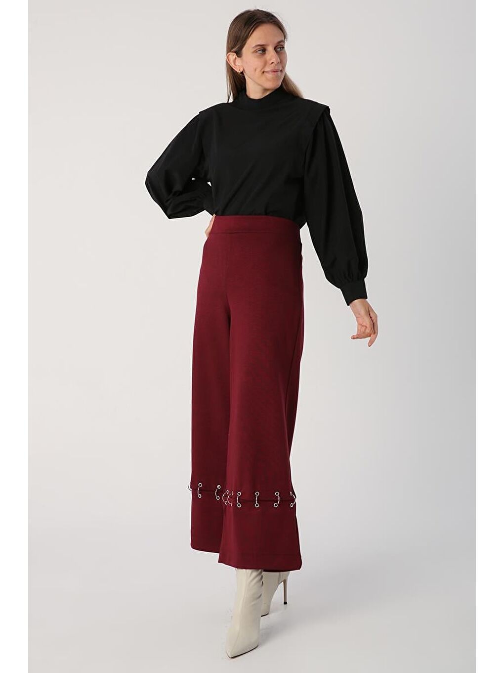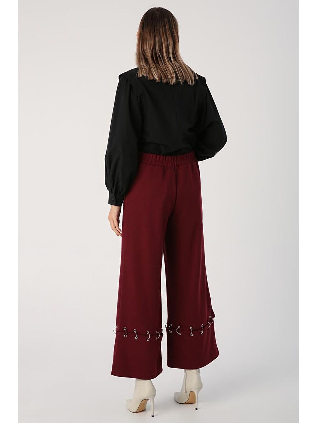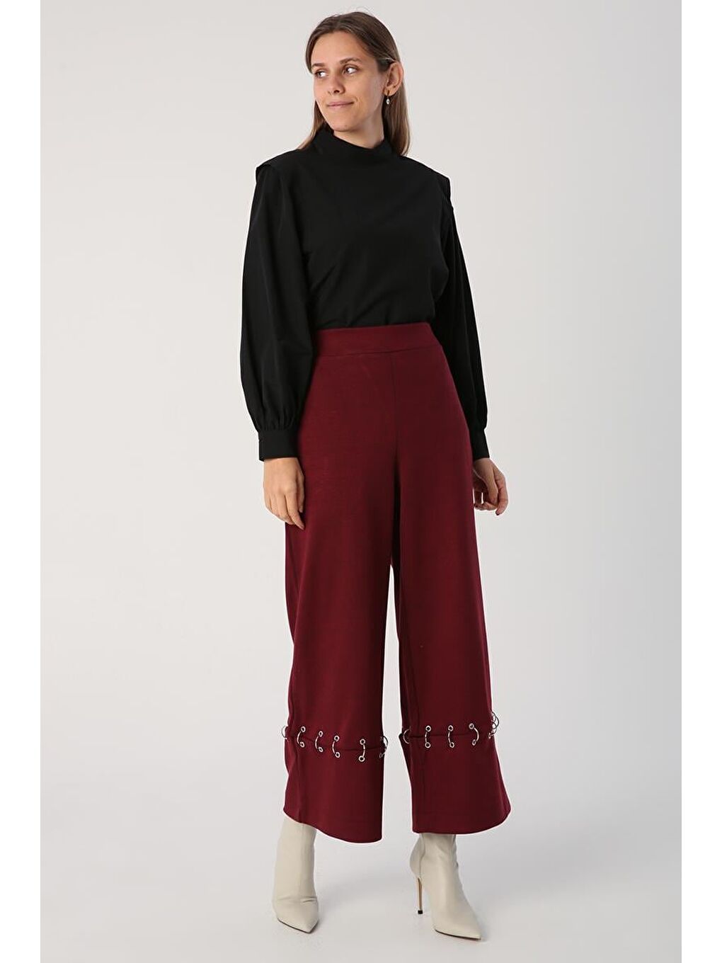 با شلوار گشاد حلقه‌ای فلزی-زرشکی، استایلی مدرن و راحت داشته باشید