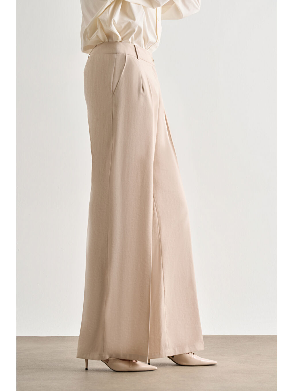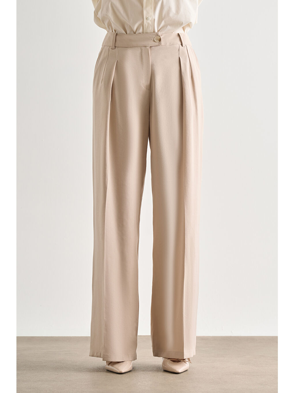 شلوار مودال دو لایه پلیسه به رنگ بژ سنگی