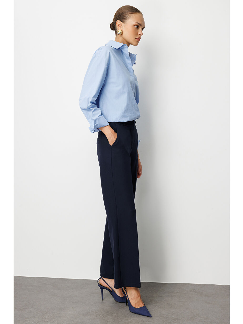 شلوار پارچهای کلاسیک سرمهای جیبدار