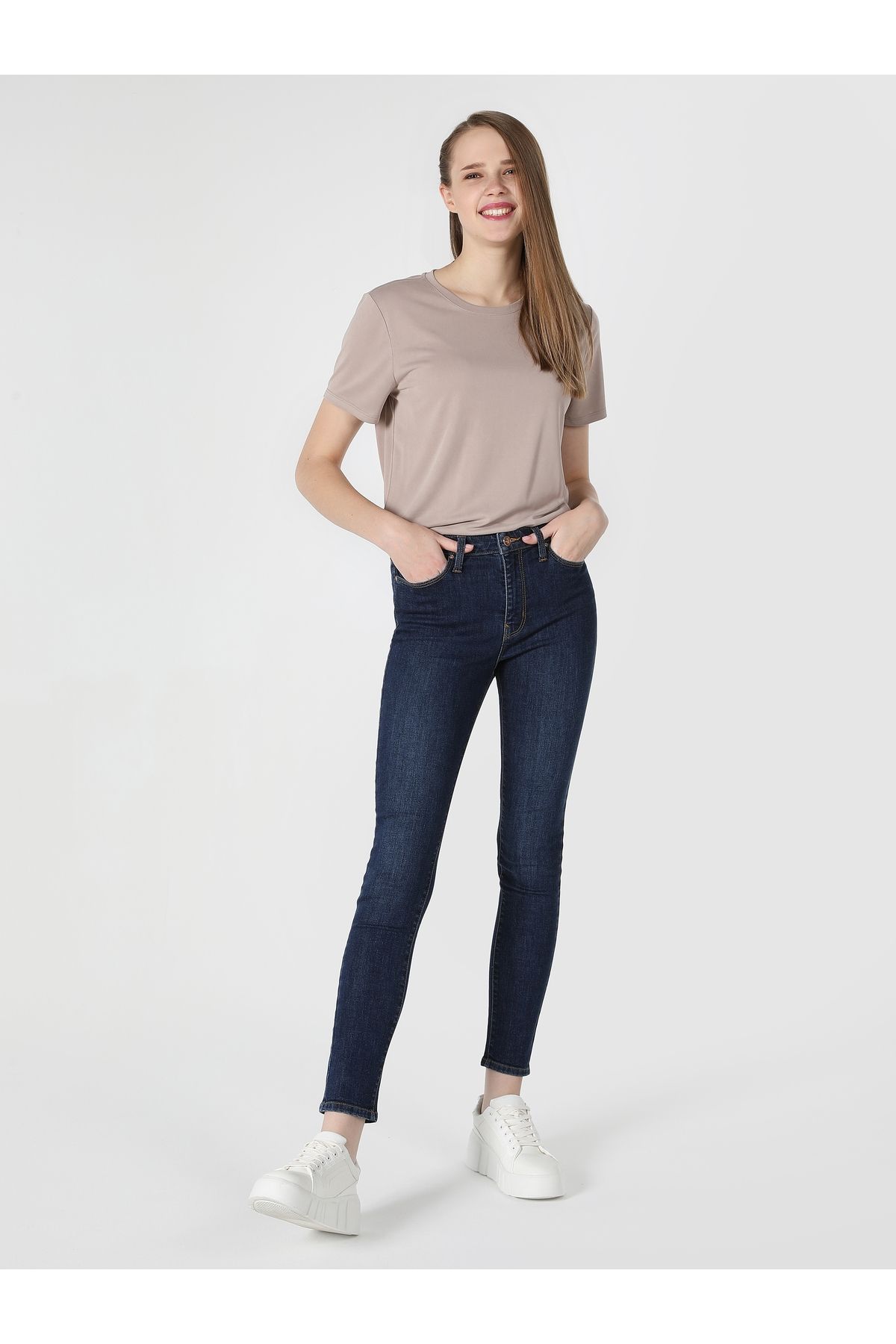 کولینز شلوار جین زنانه با کمر متوسط 759 لارا با ساق باریک فوق العاده باریک آبی تیره Cl1048737