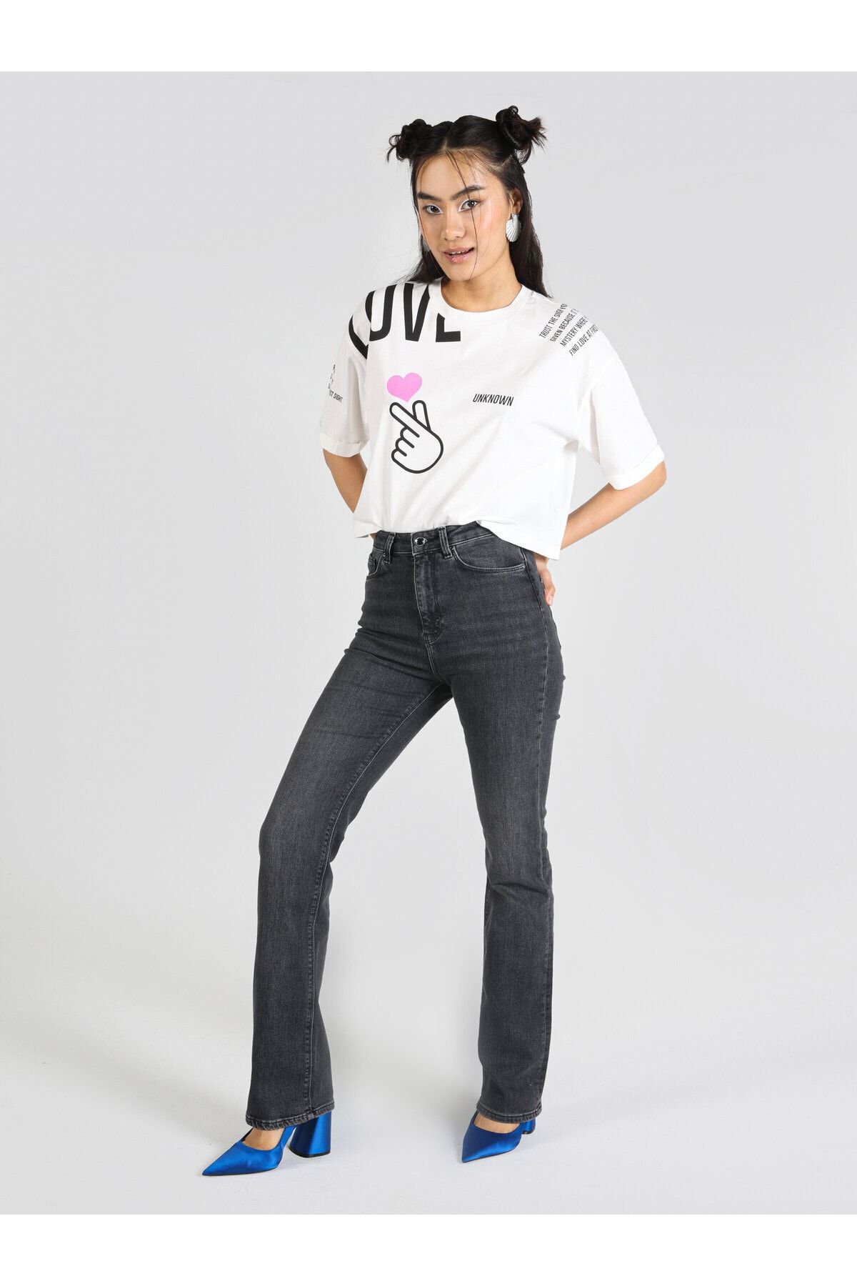 کولینز شلوار زنانه مشکی 797 Adel Flare Fit Slim Cut High Waist Flare Leg