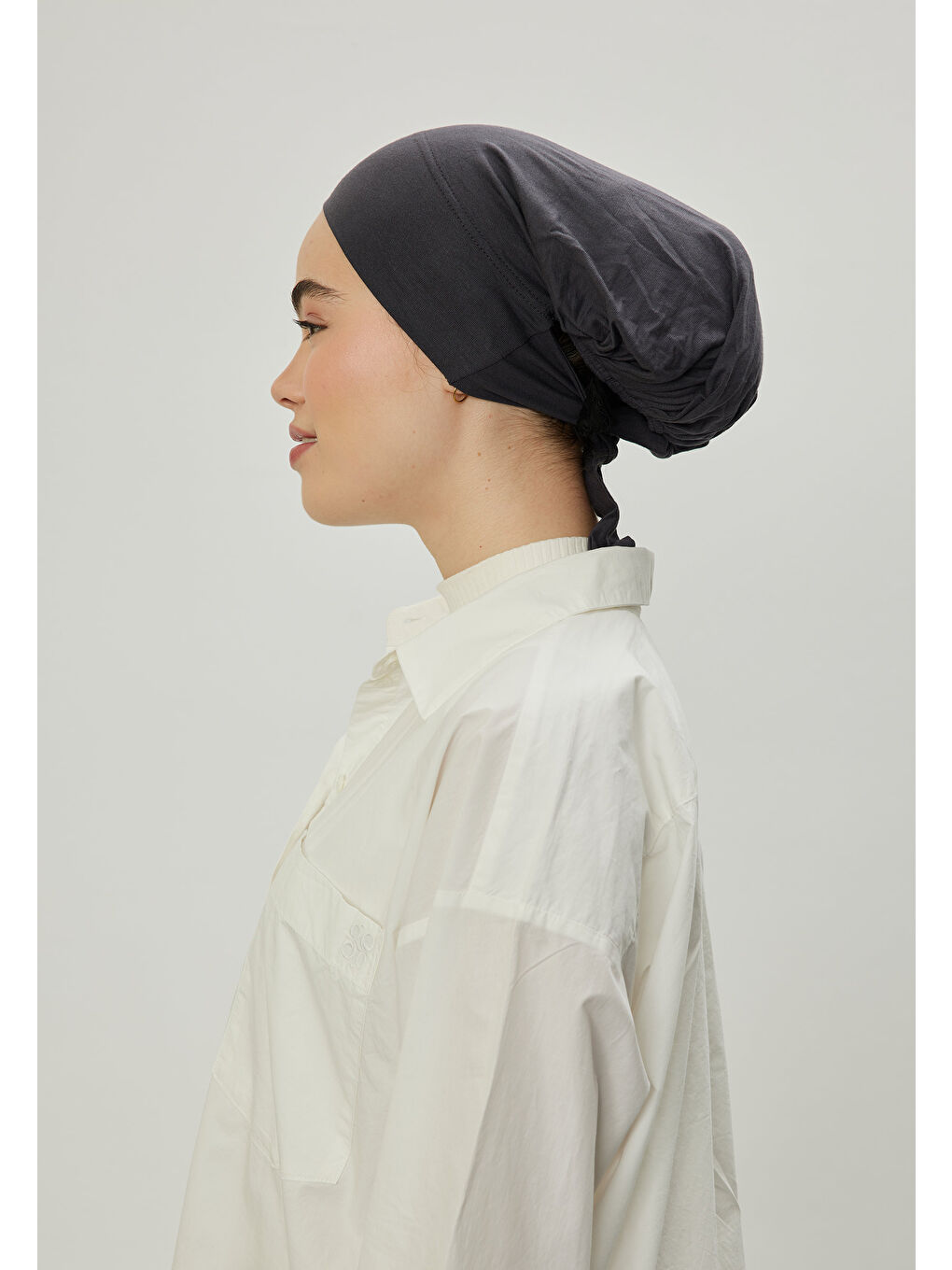 باید در پشت گردن بسته شود. قسمت جلویی آن جادار است. به لطف ساختار پنبهای قابل تنفس، باعث سردرد یا ریزش مو نمیشود. جنس پارچه ۱۰۰٪ پنبه است.
