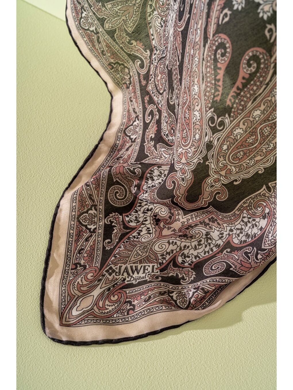 ویژگیهای محصول؛ – ۹۰ سانتیمتر در ۹۰ سانتیمتر – چاپ دیجیتال – دوخت لبه: دستدوز – روسری خود را با دست در دمای ۳۰ درجه بشویید. با پهن کردن خشک کنید. – داخل آن مشخص نیست – نیازی به اتو ندارد – جنس؛ پارچه فنری نرم