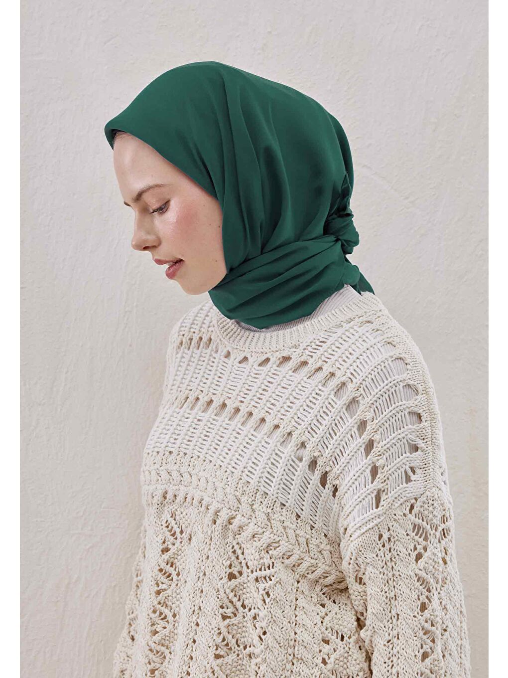 روسری ابریشمی نخی بژ زمردی