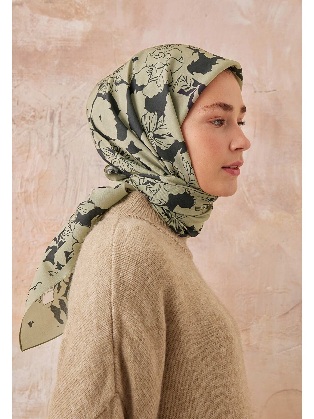روسری ابریشمی نخی طرح گل صد تومانی سبز