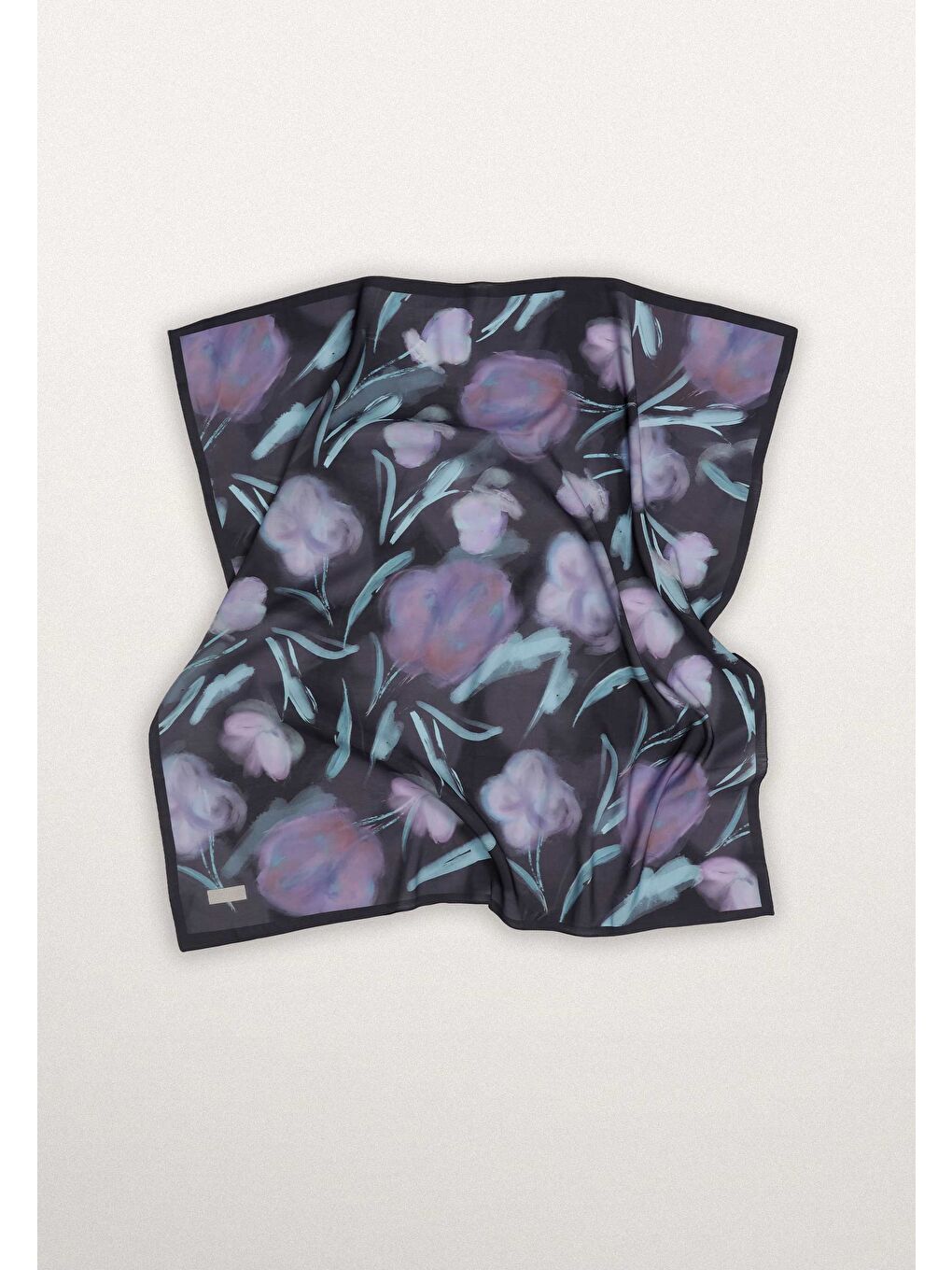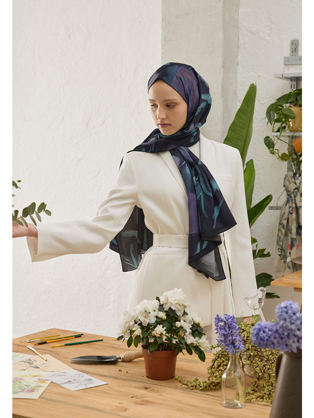 روسری ابریشمی نخی طرح دارسی آبی تیره