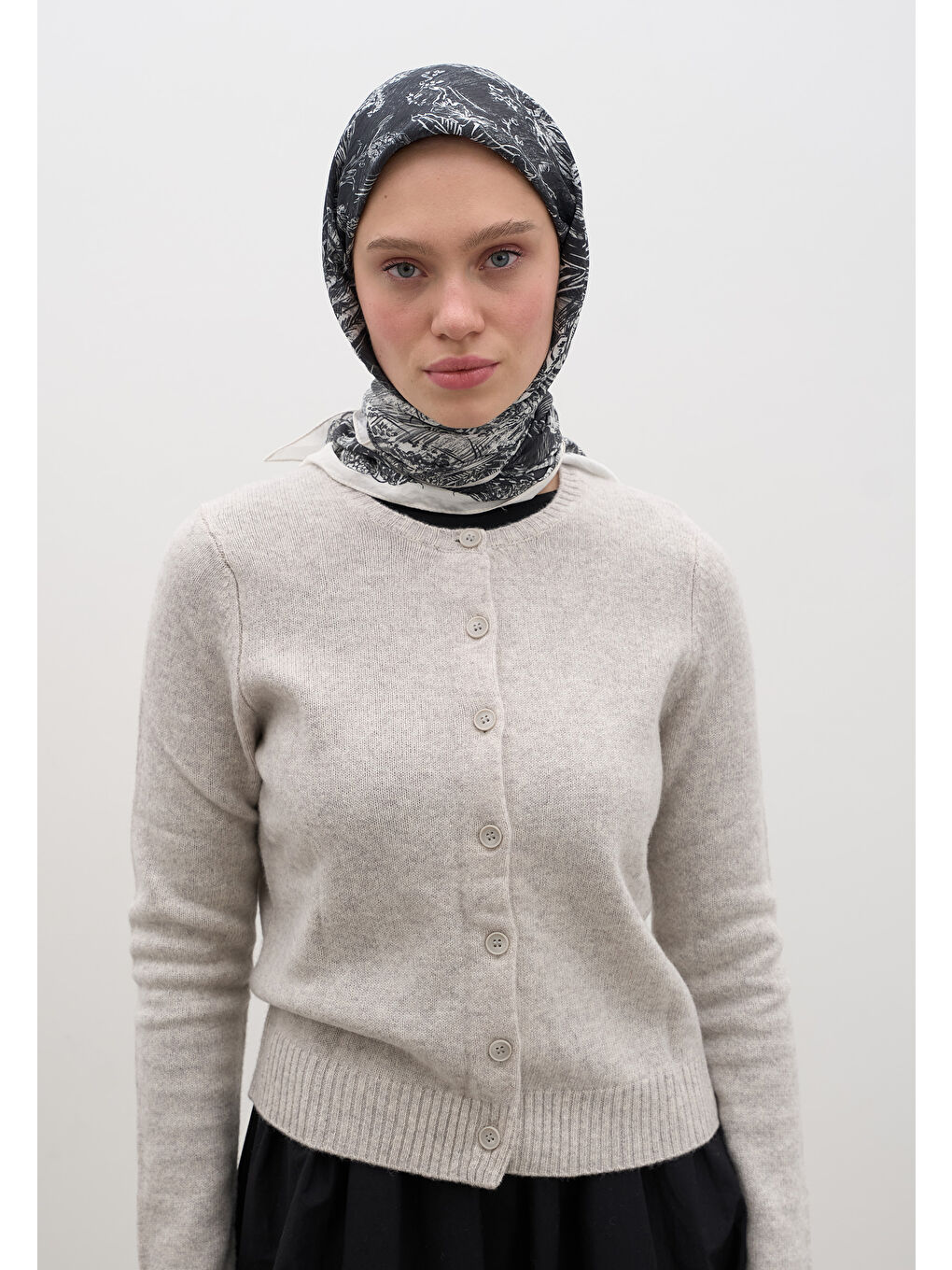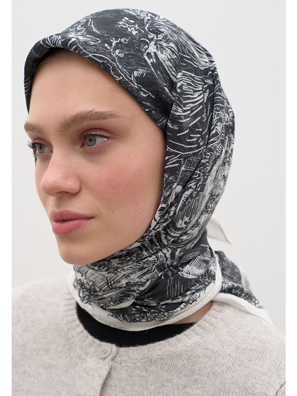 روسری نخی ویسکوز طرحدار Secret Elegance سرمهای