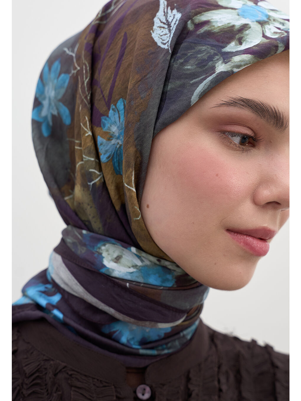 روسری نخی ویسکوز طرح برگهای دیتسی سرمهای
