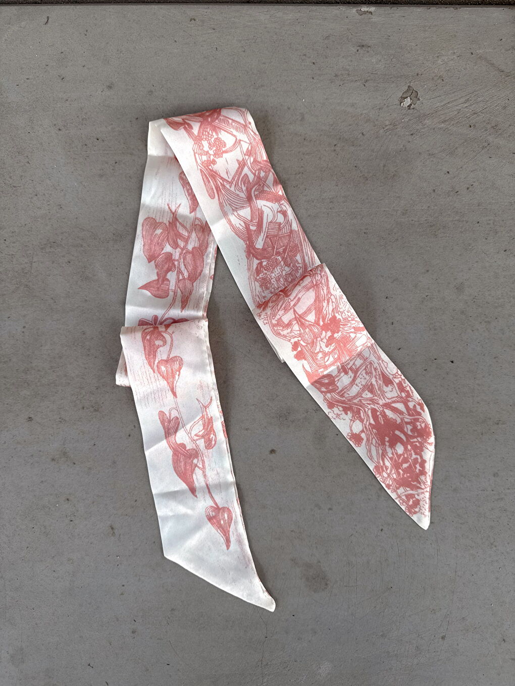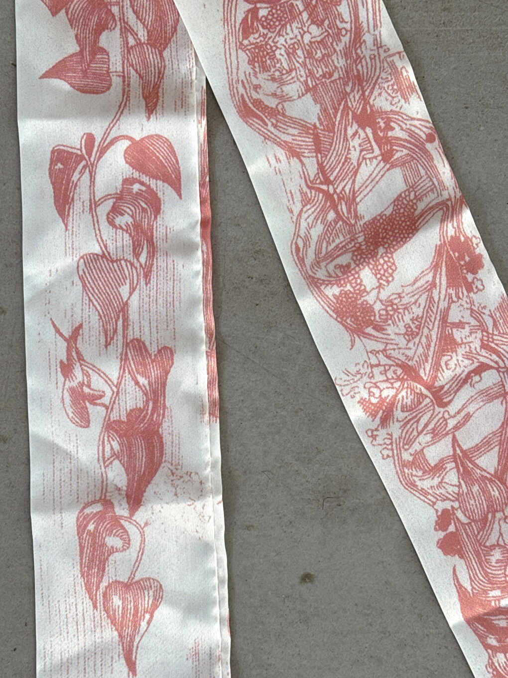 روسری ساتن نرم طرحدار دو لایه طرحدار صورتی سالمون